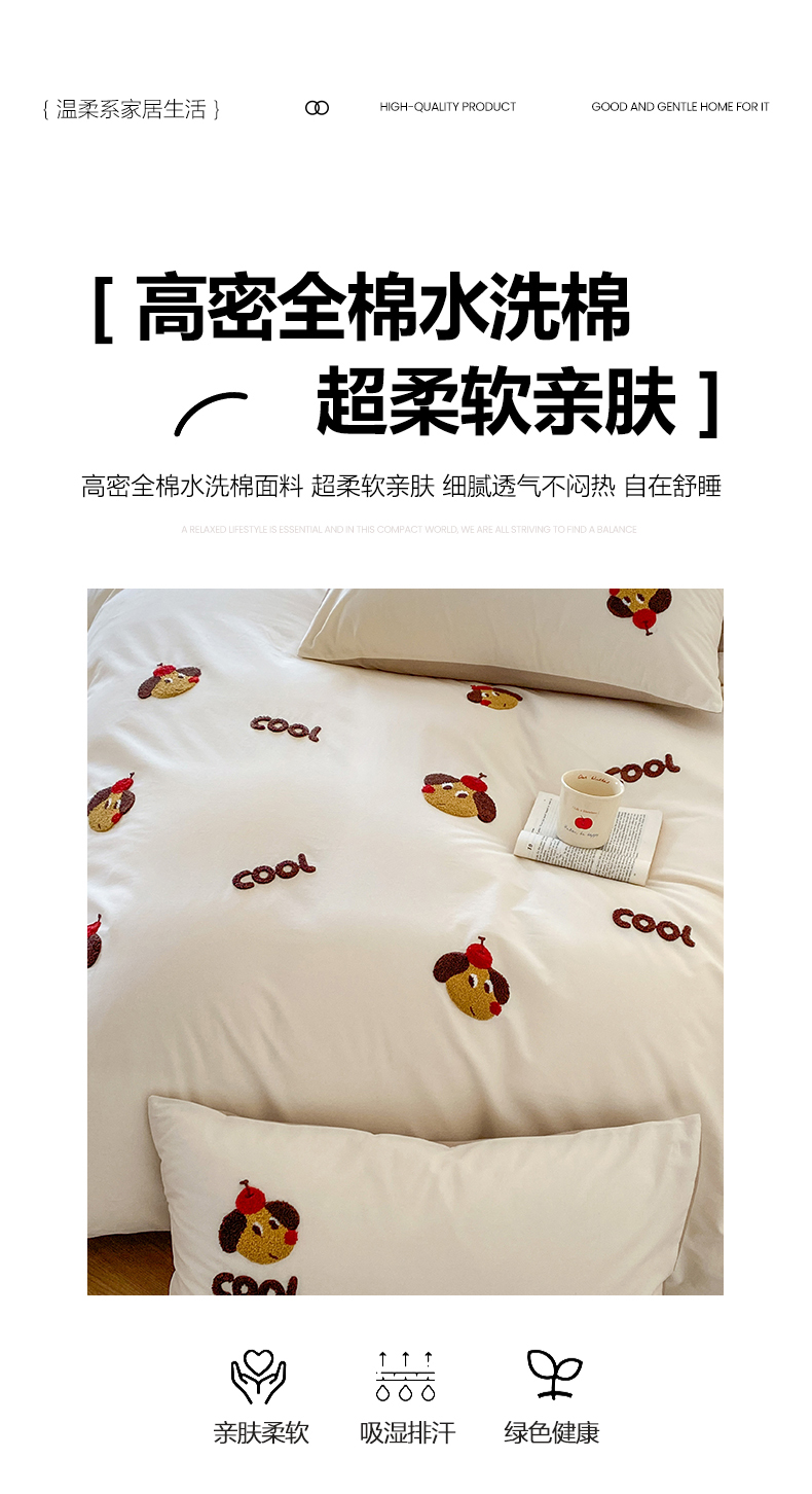 商品名称:(总)拼社家纺 2026新款A类母婴级全棉纯棉水洗棉四件套毛巾绣纯棉四件套床上用品提供买家秀