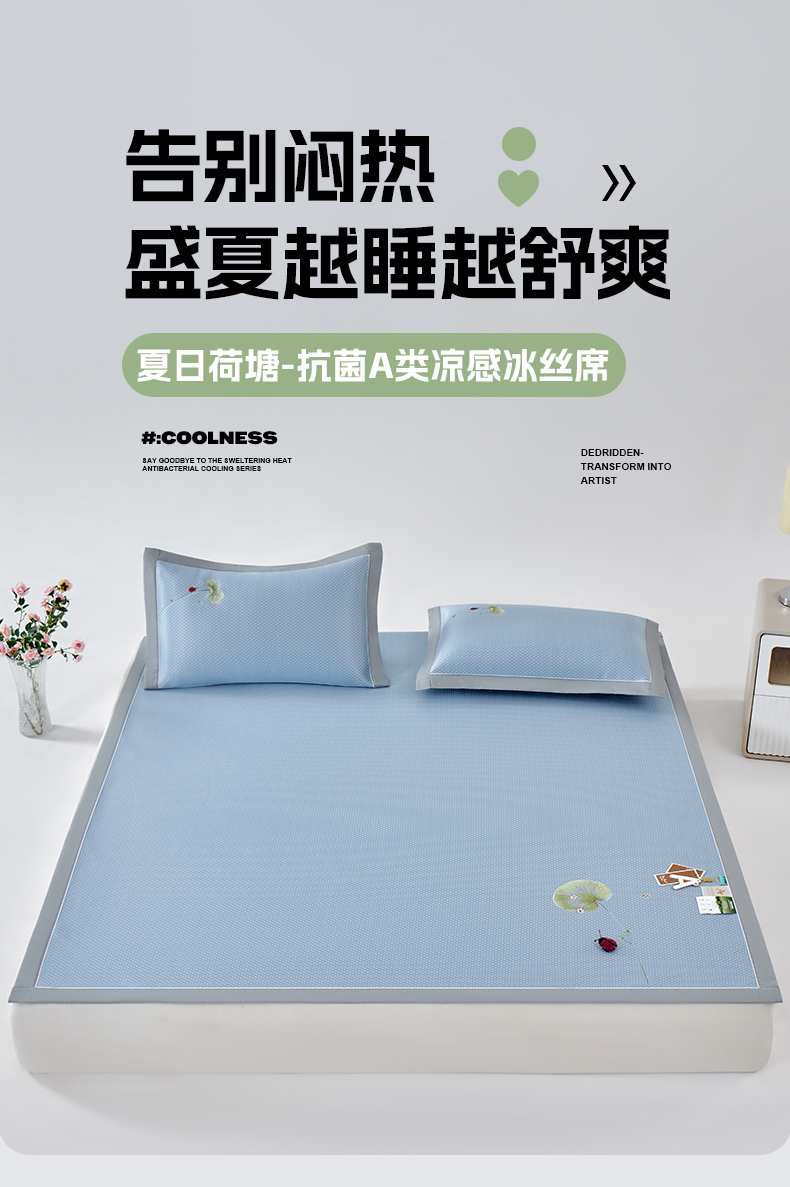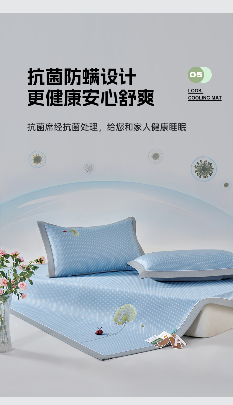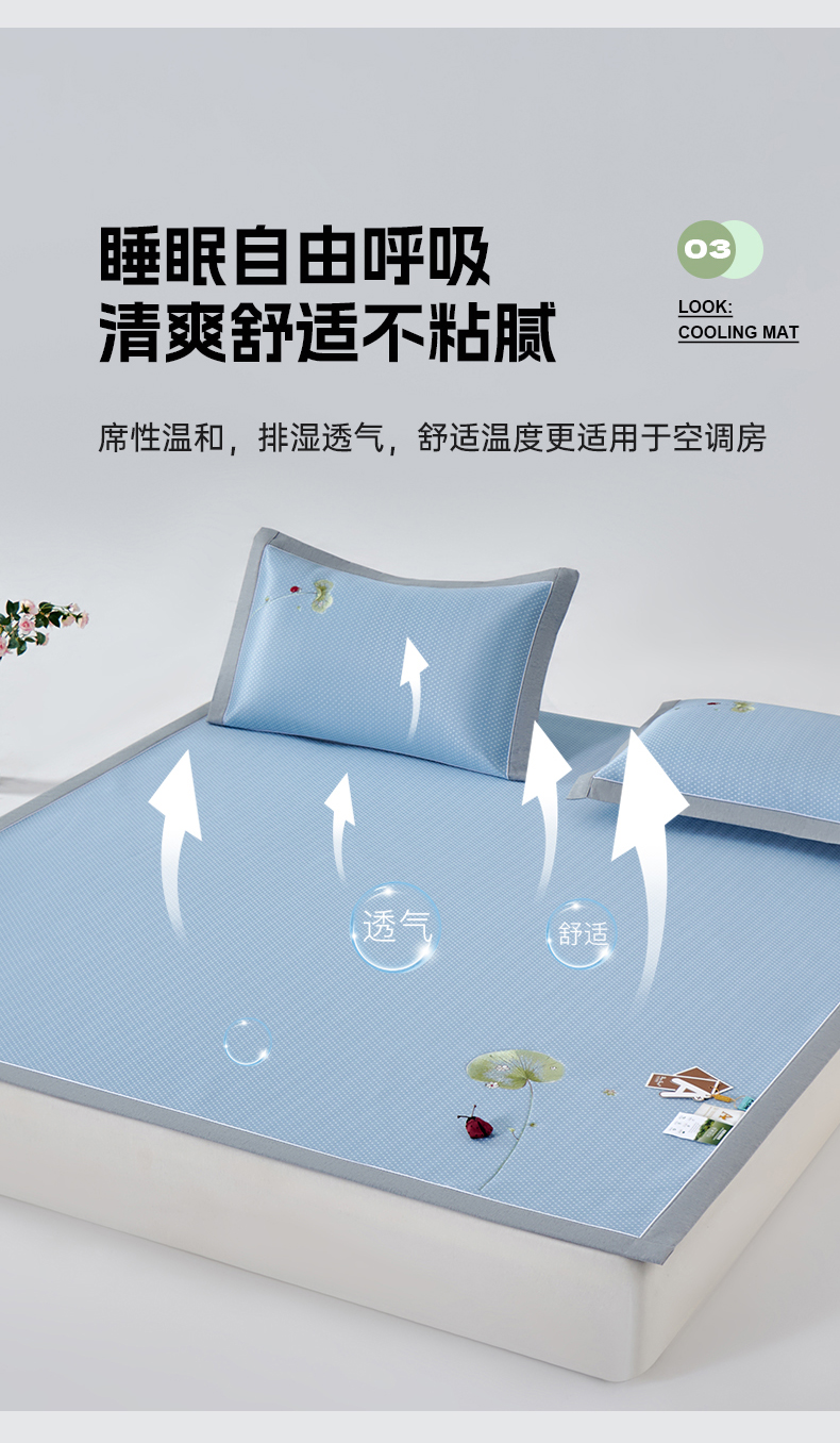 (总)小牛席业 2026新款小冰块大象凉感冰丝席凉席竹席藤席冰藤席乳胶席豆豆席,粉色,香槟,灰色,绿色,蓝色