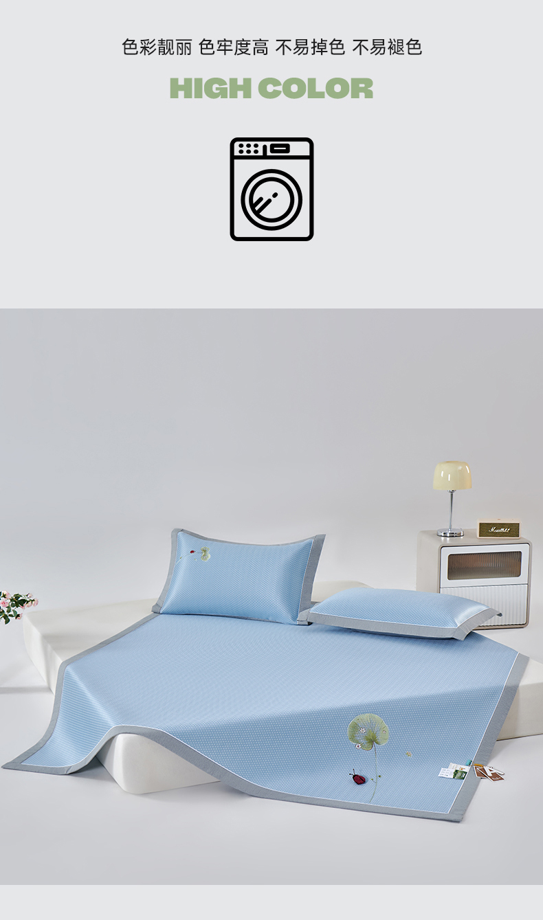 (总)2023新款超精密冰丝席-小斜纹系列-床笠款藤席凉席竹席,粉色,蓝色,绿色,银灰