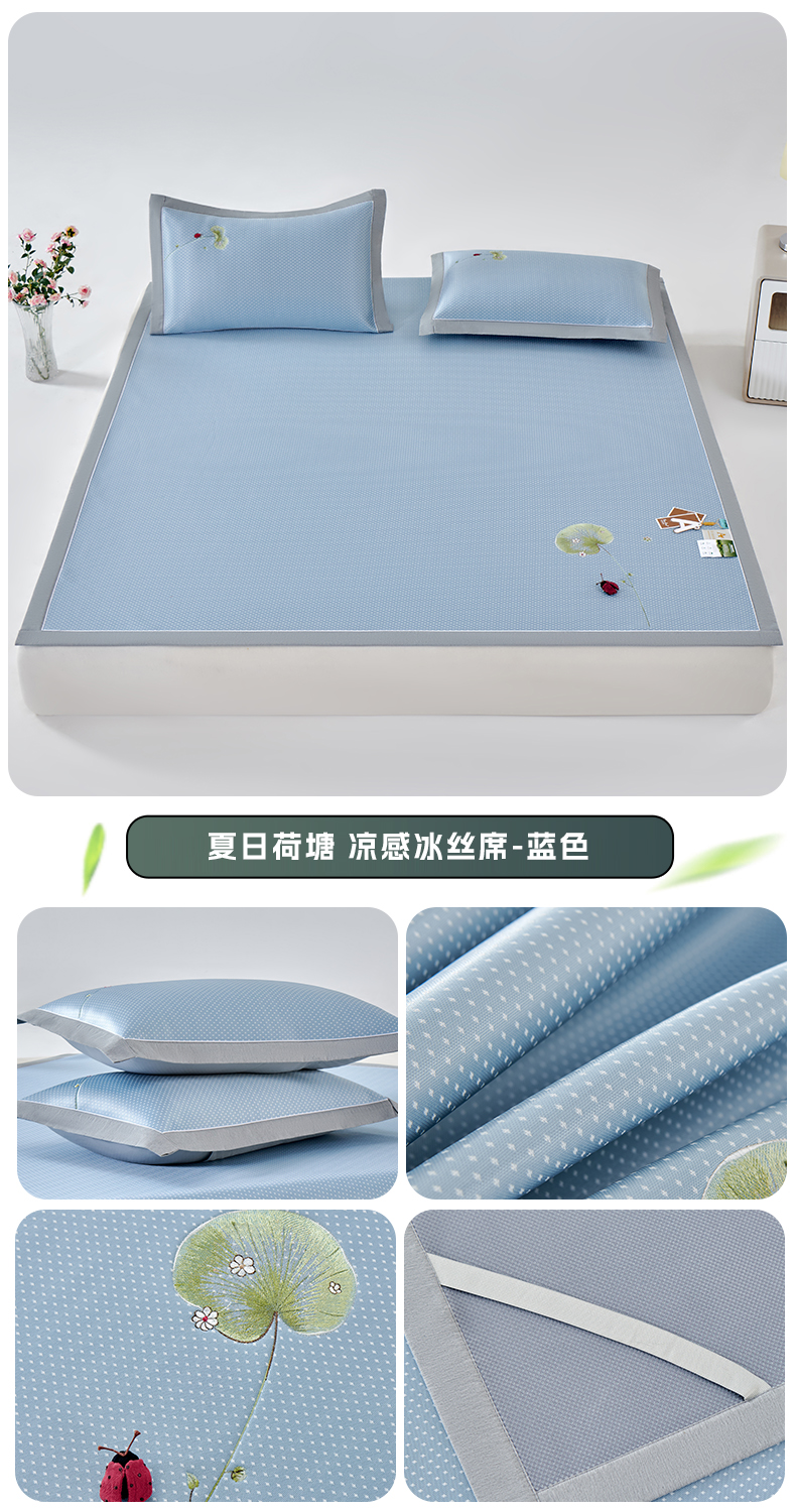 商品名称:小牛席业 2026新款满天星-夏日荷塘冰丝席凉席藤席草席竹席乳胶席凉感豆豆席 蓝色