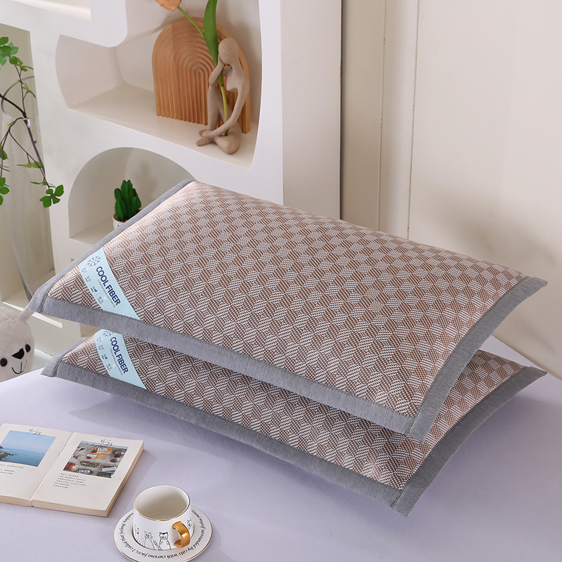 小牛席业 2026新款棋盘格冰丝夏凉枕套凉席藤席冰藤席冰丝席草席竹席枕套 咖色