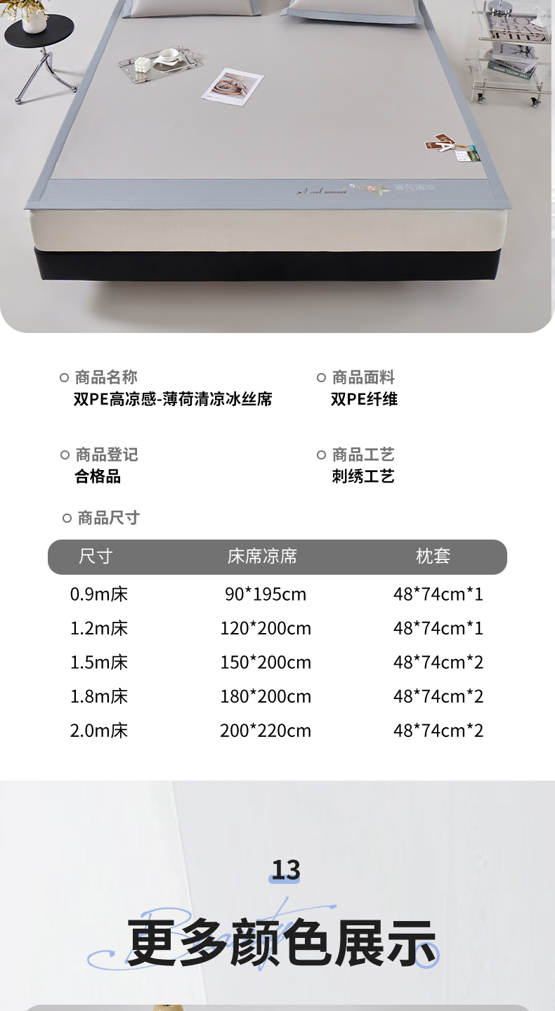 商品名称:(总)小牛席业 2026新款双PE高凉感-薄荷清凉冰丝席凉席藤席竹席草席凉感席