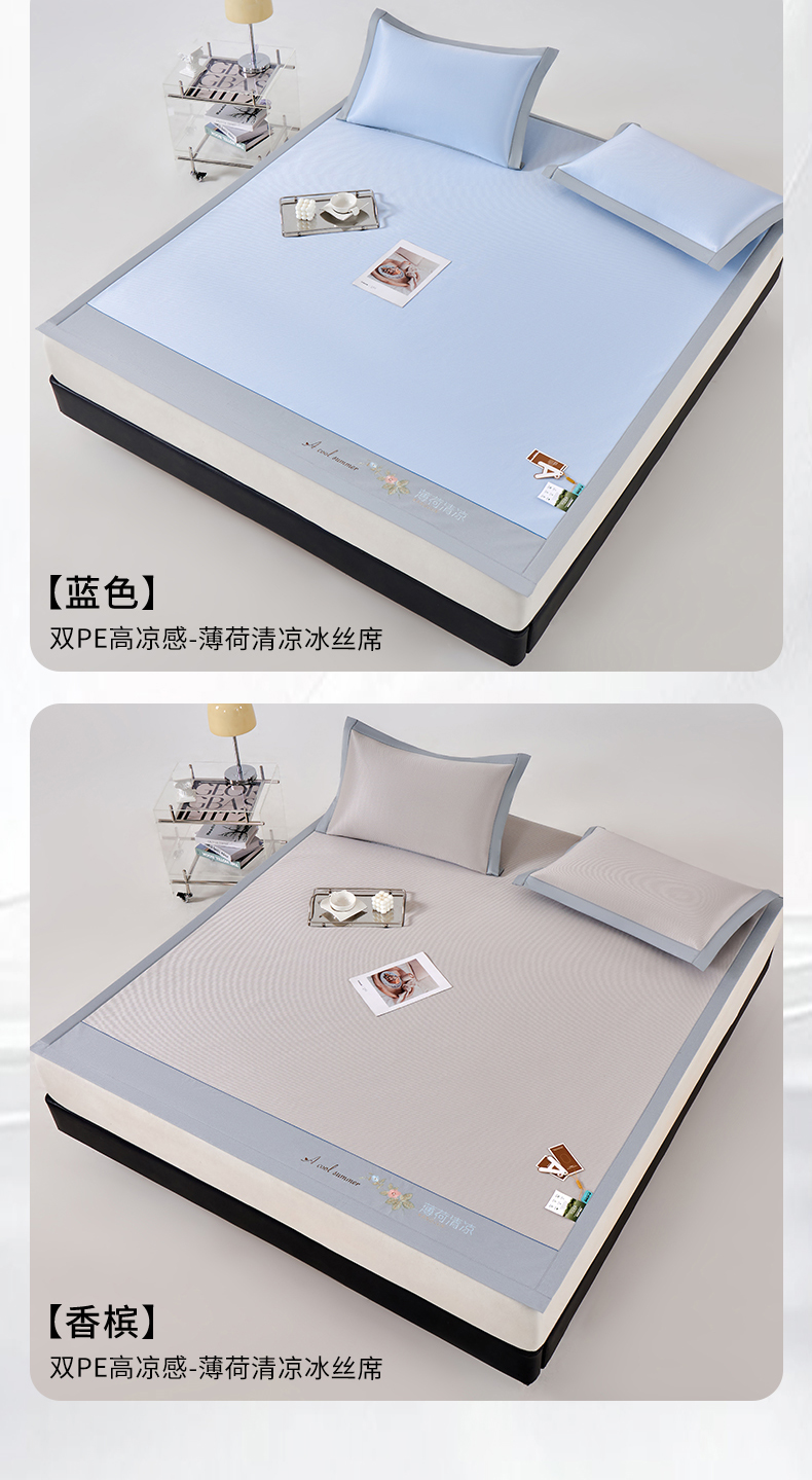 (总)小牛席业 2026春夏新款轻奢半定位凉感冰丝席凉席席子系列床笠款,轻奢半定位-粉色 床笠款,轻奢半定位-灰色 床笠款,轻奢半定位-蓝色 床笠款,轻奢半定位-抹茶 床笠款,轻奢半定位-香槟 床笠款