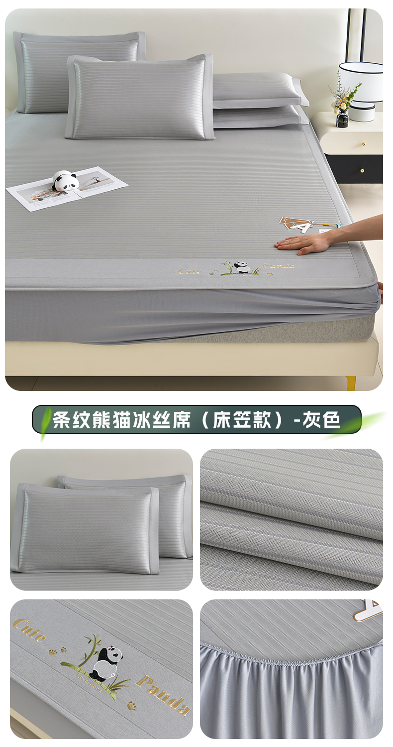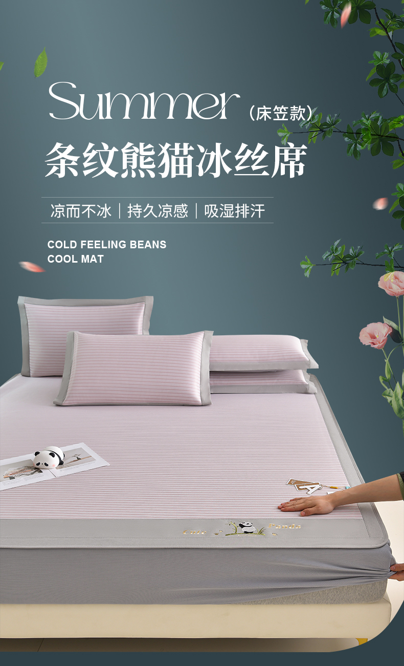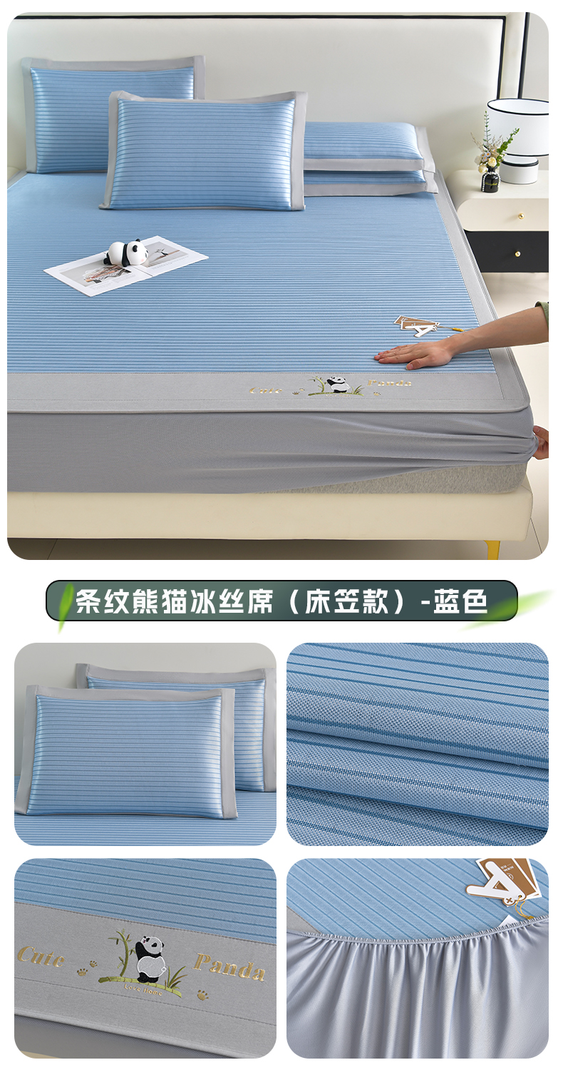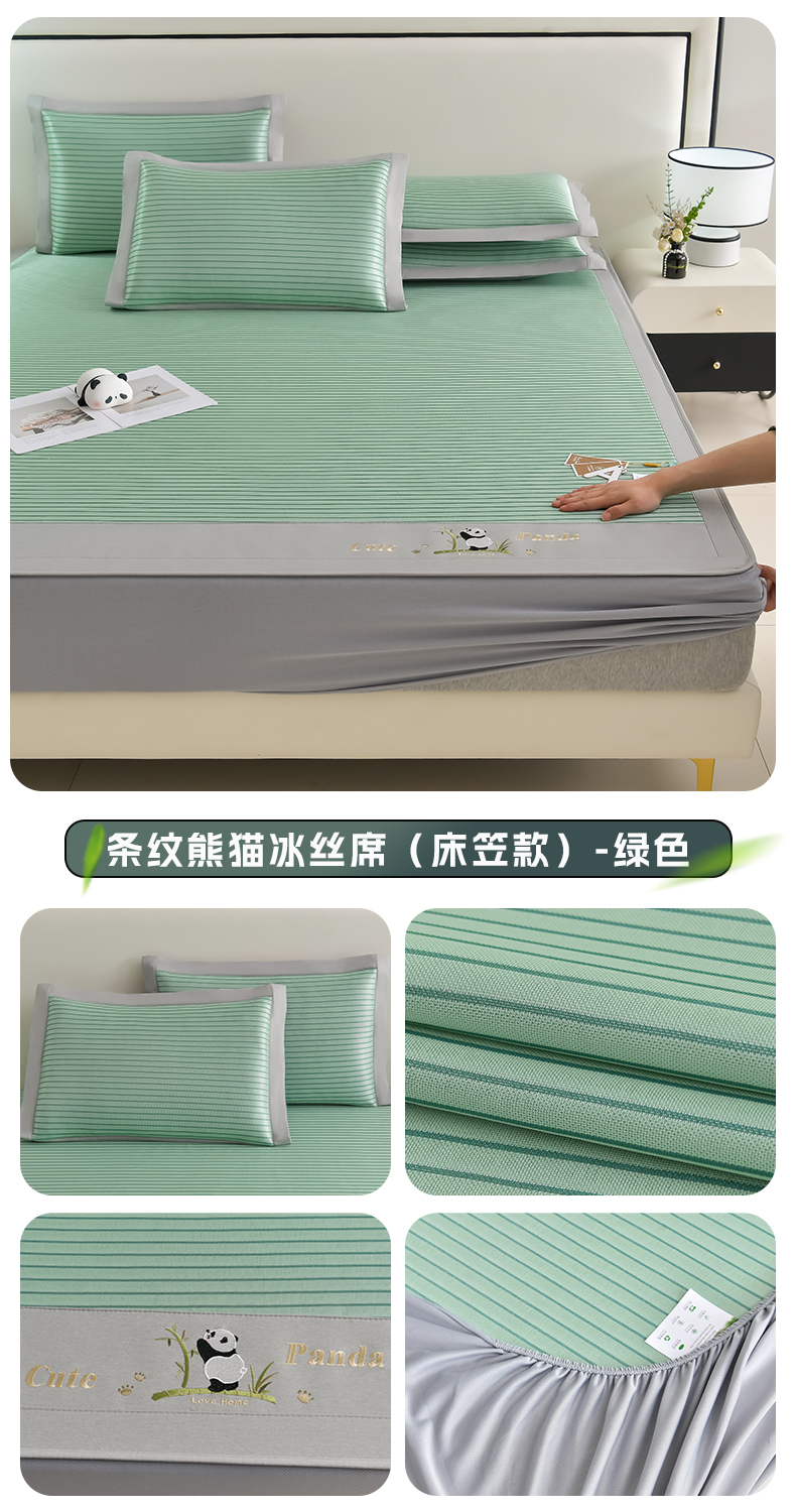 商品名称:小牛席业 2026新款条纹爱家熊猫冰丝席(床笠款)藤席冰藤席冰丝席可机洗凉感冰丝席豆豆席PE霸王 粉色