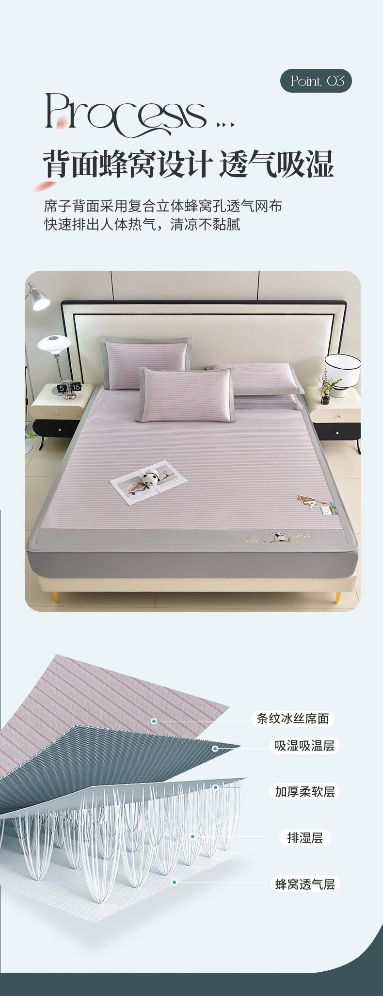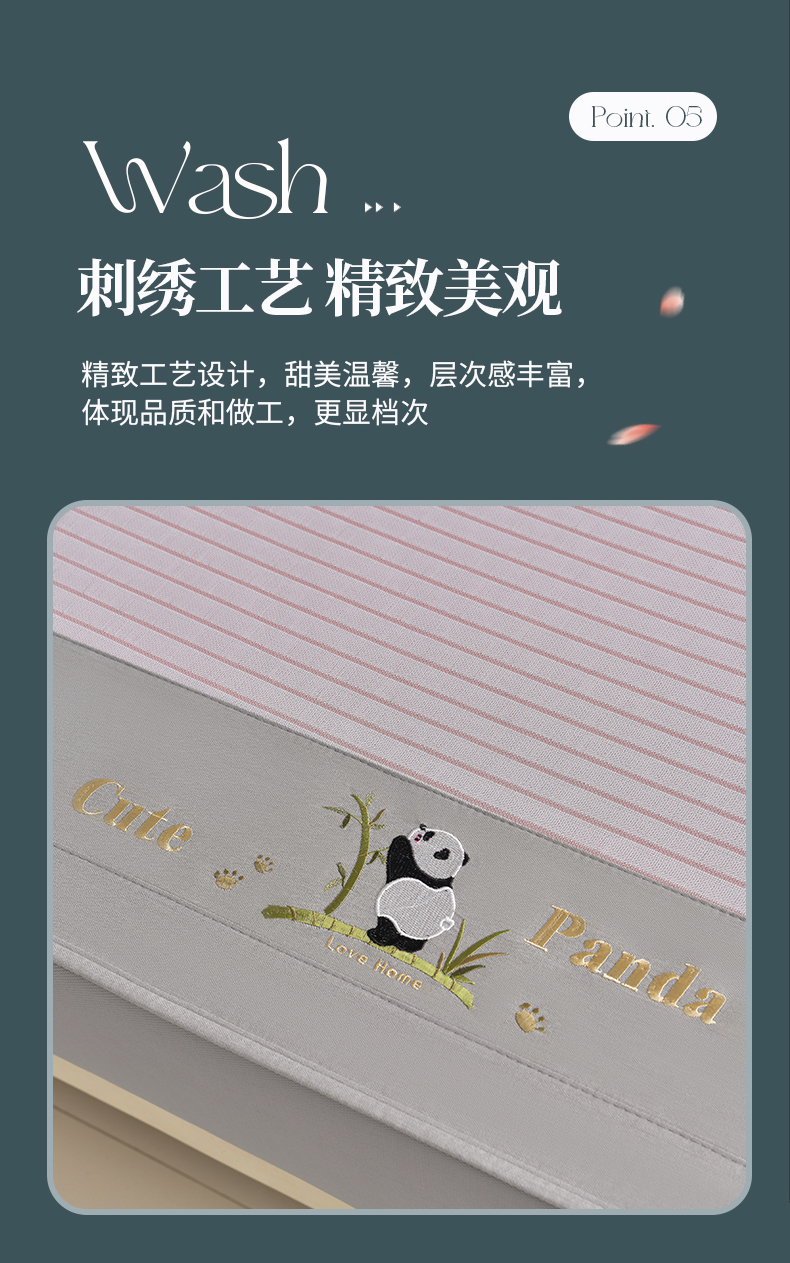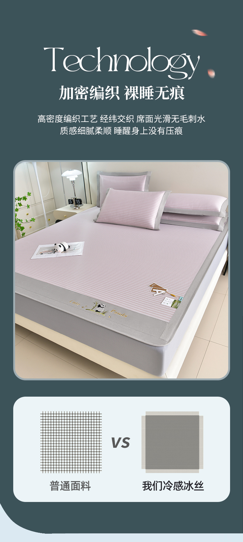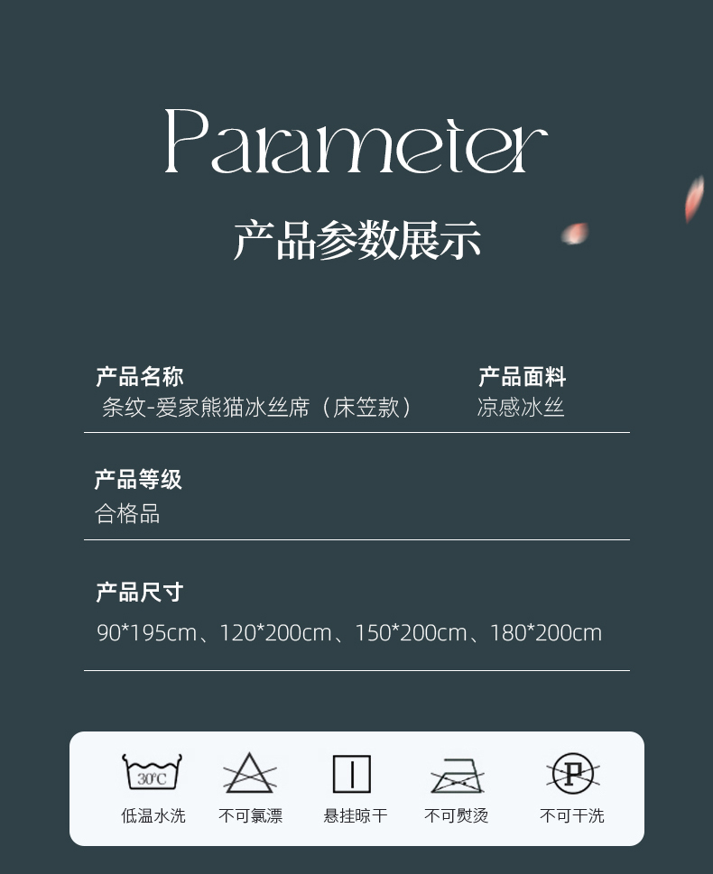 商品名称:小牛席业 2026新款条纹爱家熊猫冰丝席(床笠款)藤席冰藤席冰丝席可机洗凉感冰丝席豆豆席PE霸王 粉色