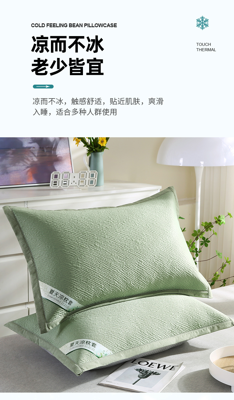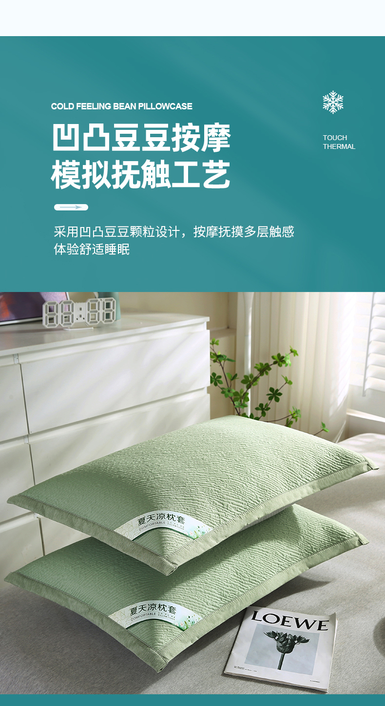 • 91家纺网 家纺一手货源 找家纺 小牛席业 2026新款小斜纹冷感豆豆枕套凉枕套夏天枕套冰丝枕套竹枕套藤枕套冰藤枕套 小斜纹冷感豆豆枕套-绿色