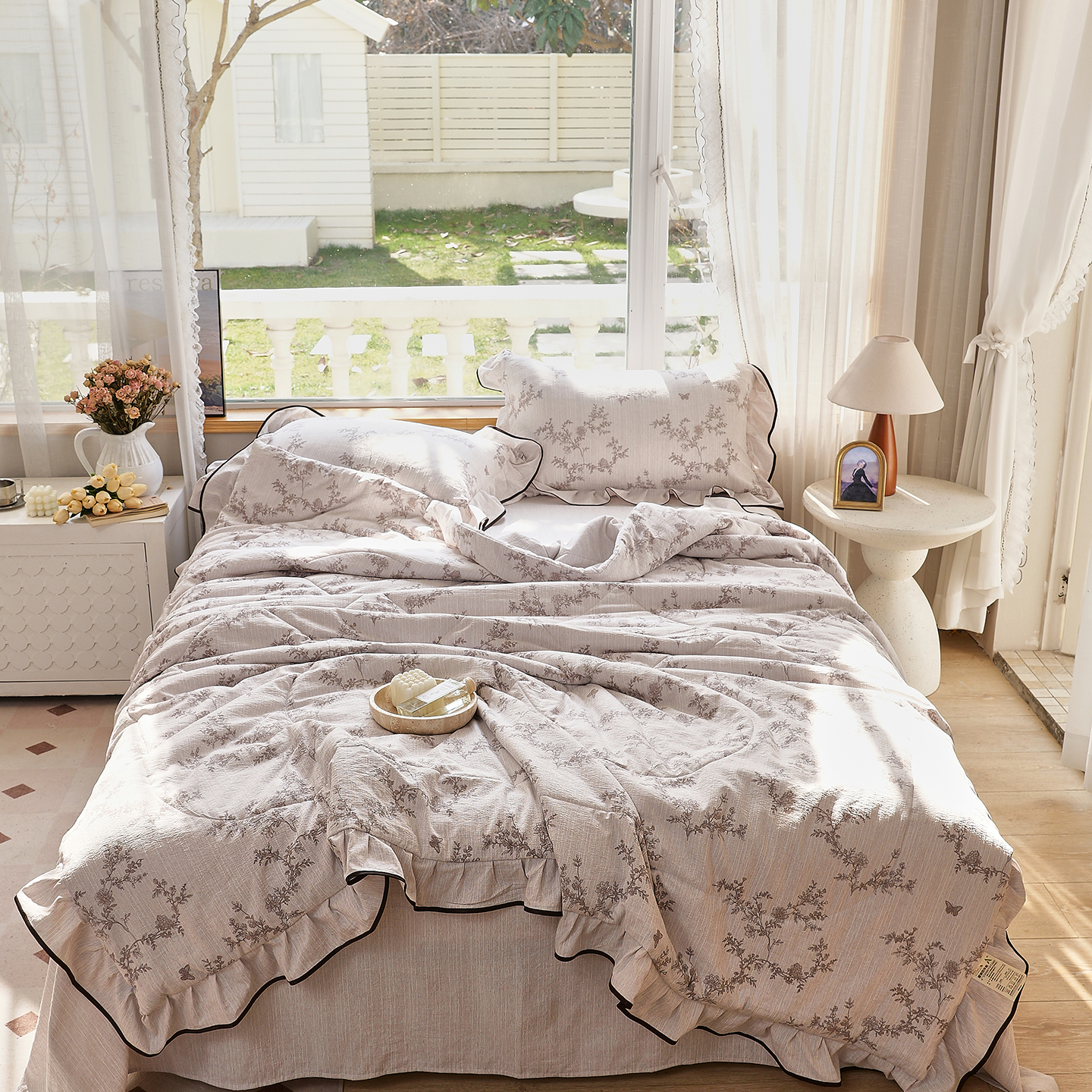 (总)梵克保罗 2026春夏新款雪纺床盖夏被夏凉被空调被四件套单夏被床盖三件套,淡米色,奶茶色,嫩芽绿,仙气紫,玉芙蓉