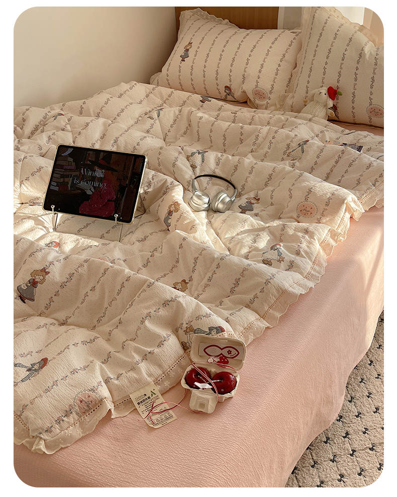 梵克保罗 2026春夏新款全棉纯棉花边皱皱纱单夏被夏凉被空调被夏被四件套 素锦纹