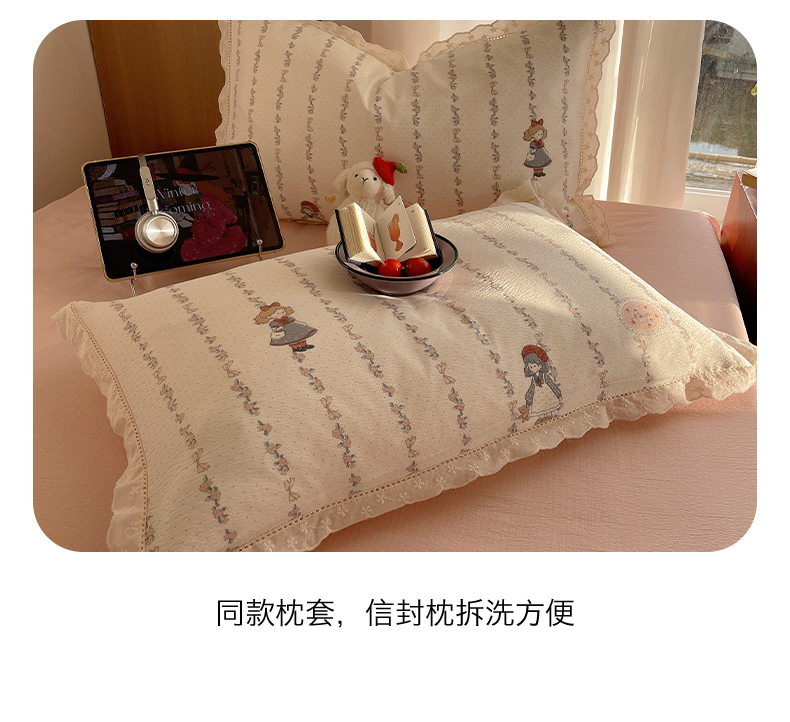 商品名称:梵克保罗 2026春夏新款全棉纯棉花边皱皱纱单夏被夏凉被空调被夏被四件套 素锦纹
