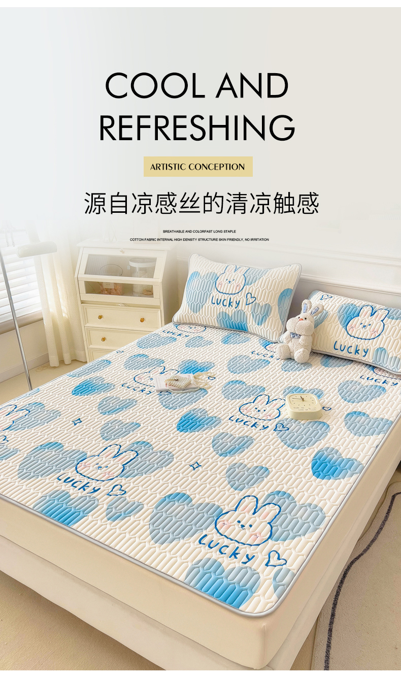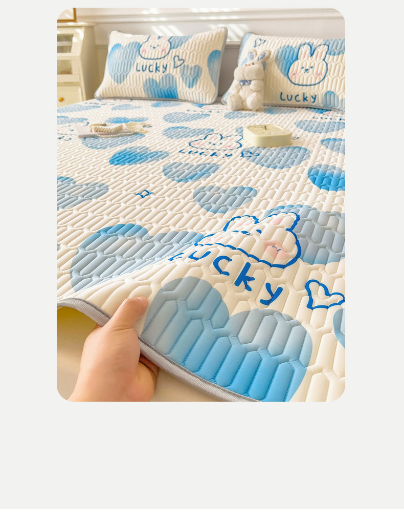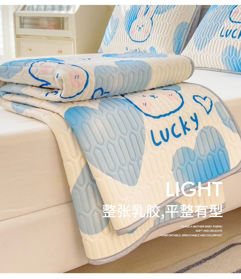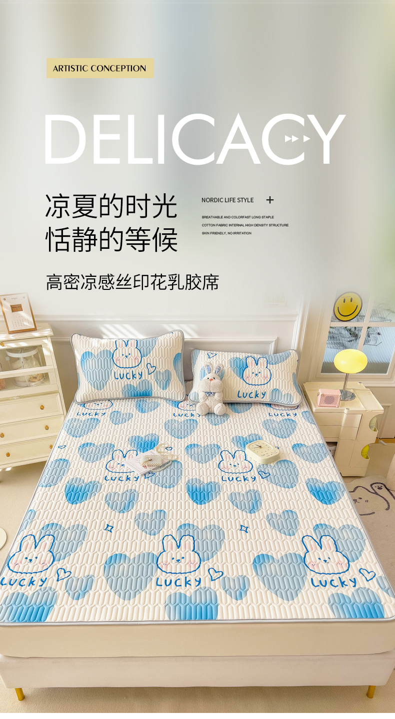 商品名称:丝羽坊 2026新款高密凉感丝印花乳胶凉席-平铺款 爱心兔