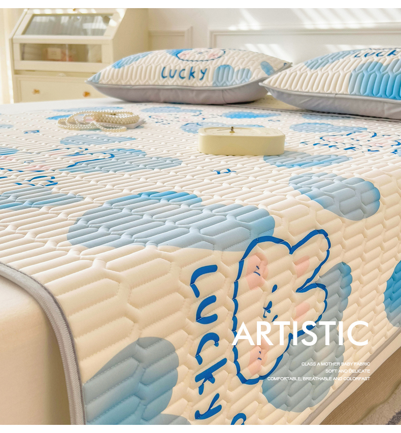 (总)丝羽坊 2026新款高密凉感丝印花乳胶凉席-床笠款,雾蓝花影,萌宠拼格,粉黛萌兔,格纹蝶影,奶白萌犬,浅蓝熊趣,糖果猫咪,彩糖点点,林间私语,薄荷甜心,爱的圈圈,春意盎然,奶绿汪仔,小白兔,小企鹅,小兔派对,星月