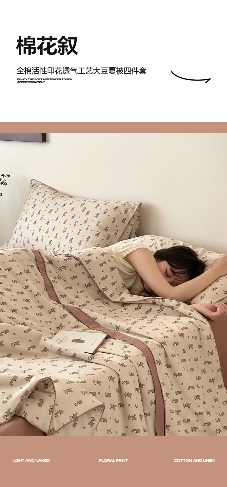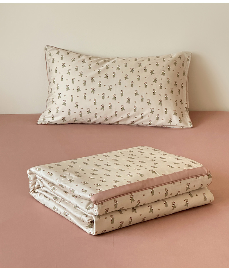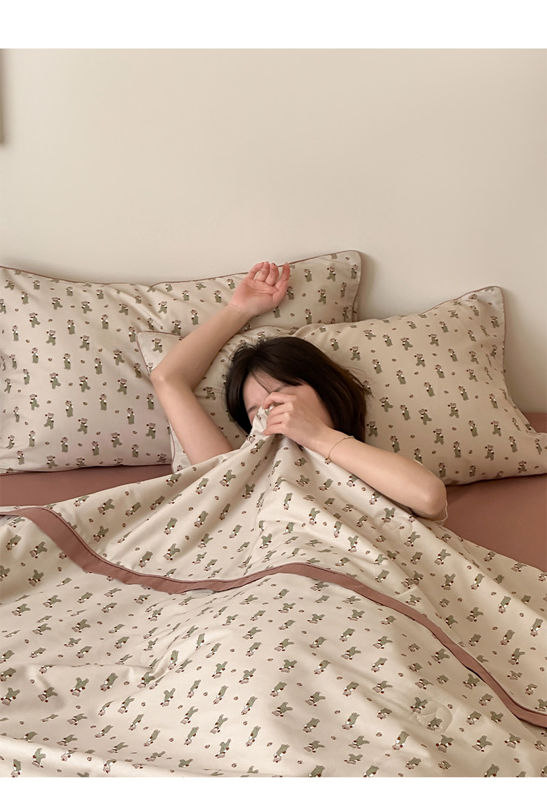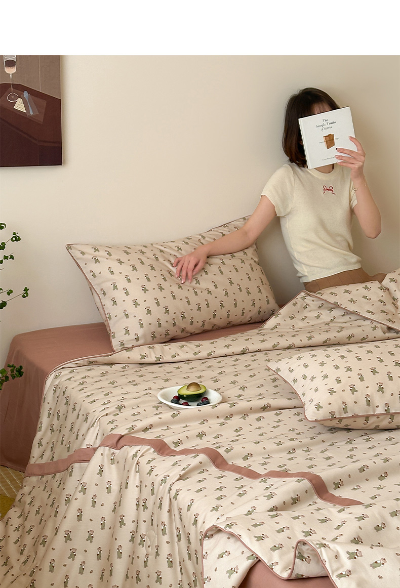 • 91家纺网 家纺一手货源 找家纺 一加一 2026新款活性印花透气工艺大豆夏被夏凉被空调被四件套-棉花叙 麦田熊熊