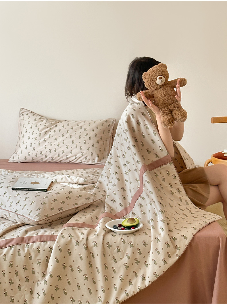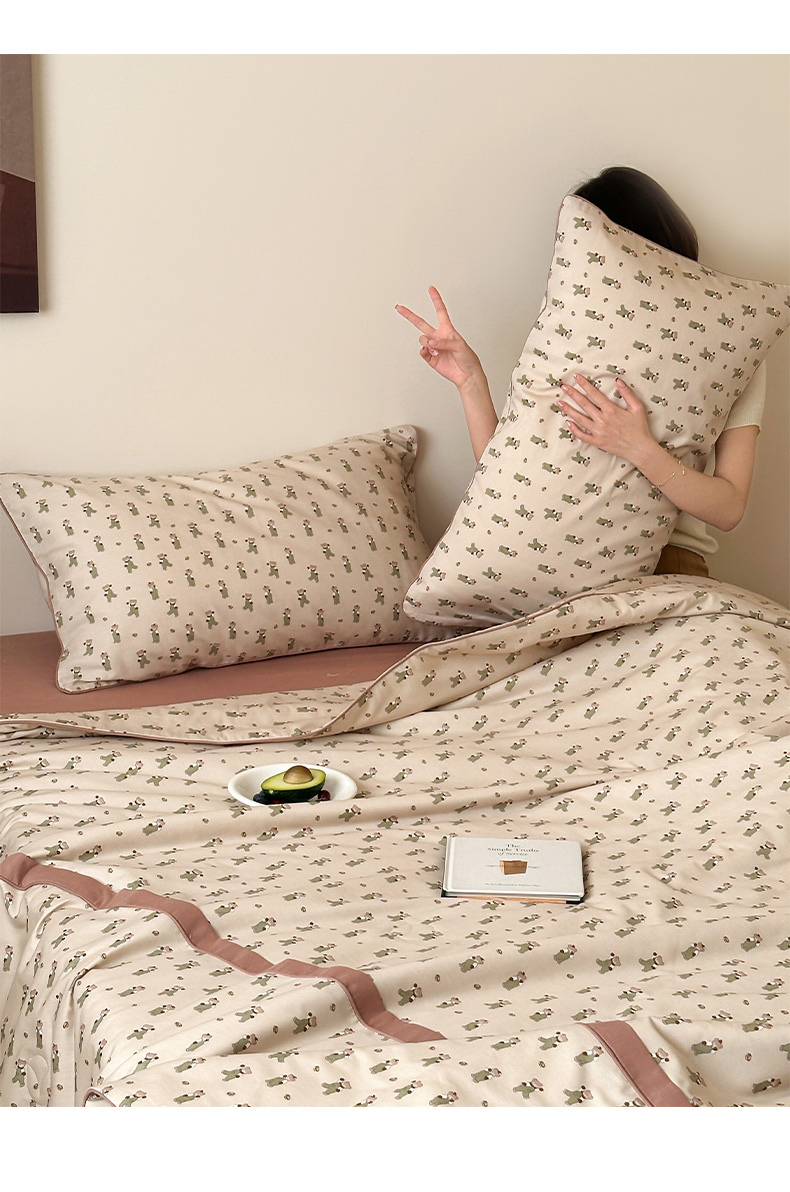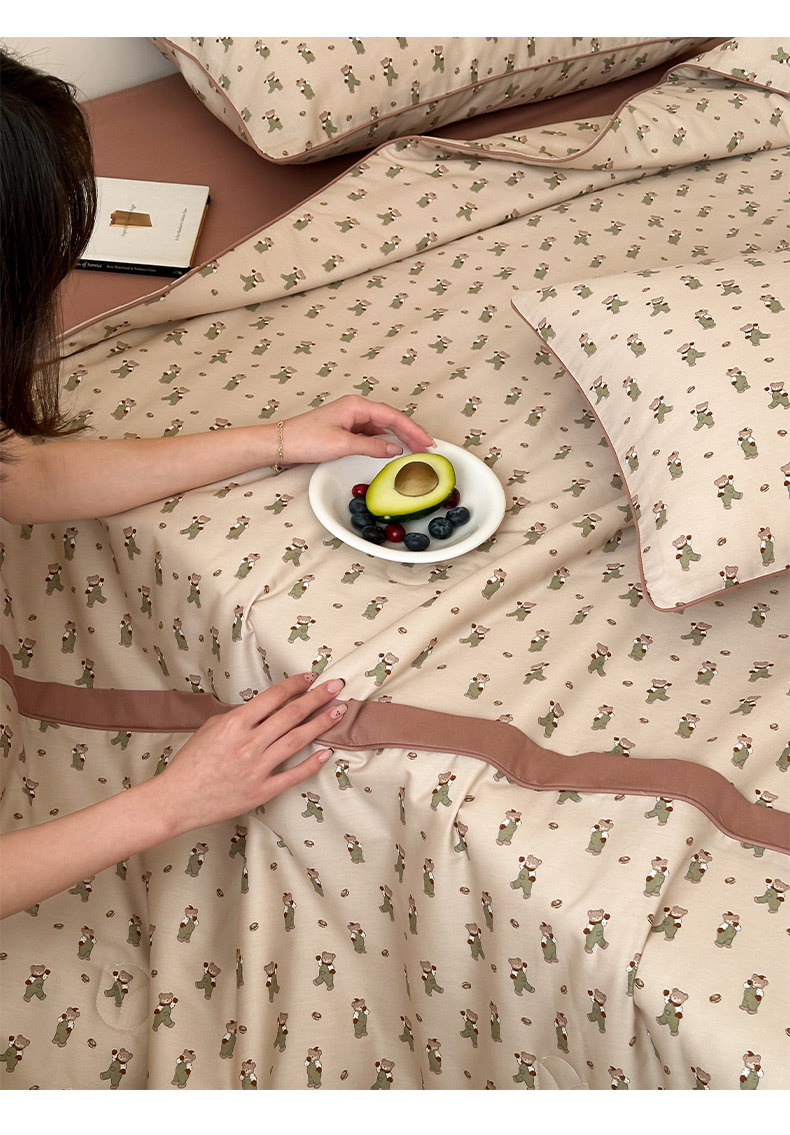 一加一 2026新款活性印花透气工艺大豆夏被夏凉被空调被四件套-棉花叙 麦田熊熊