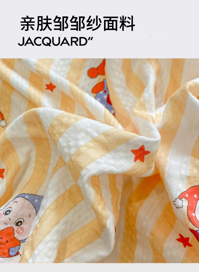 商品名称:优贝家纺 2026新款云感双层纱皱皱纱花边床盖夹棉四件套 星星人