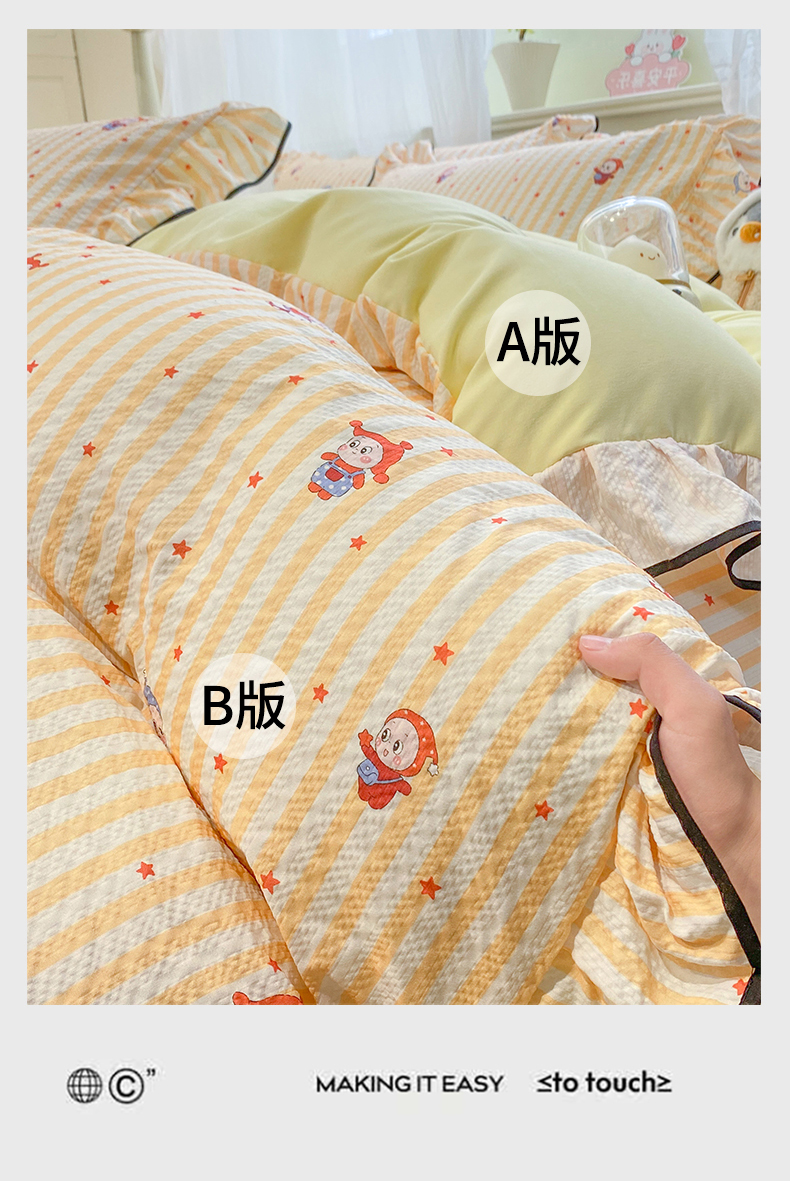 (总)优贝家纺 2026新款云感双层纱皱皱纱花边四件套,星星人,花香,马马福福,马马福福-咖,春日花园,可爱熊,奇奇乐园,甜心时光,小花蝴蝶结,小马乐园,小美好,星雪人,悠然小花