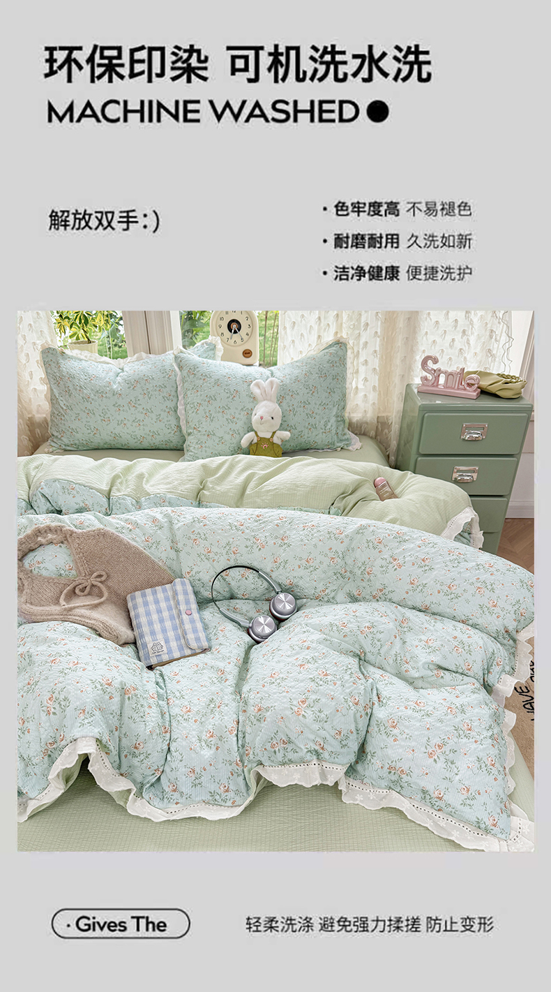 当前位置: 91家纺网 > 商品网购 > 床品套件 > 四件套 > 其它四件套 > 优贝家纺 2026新款云感皱皱纱韩系花边四件套 马上有钱