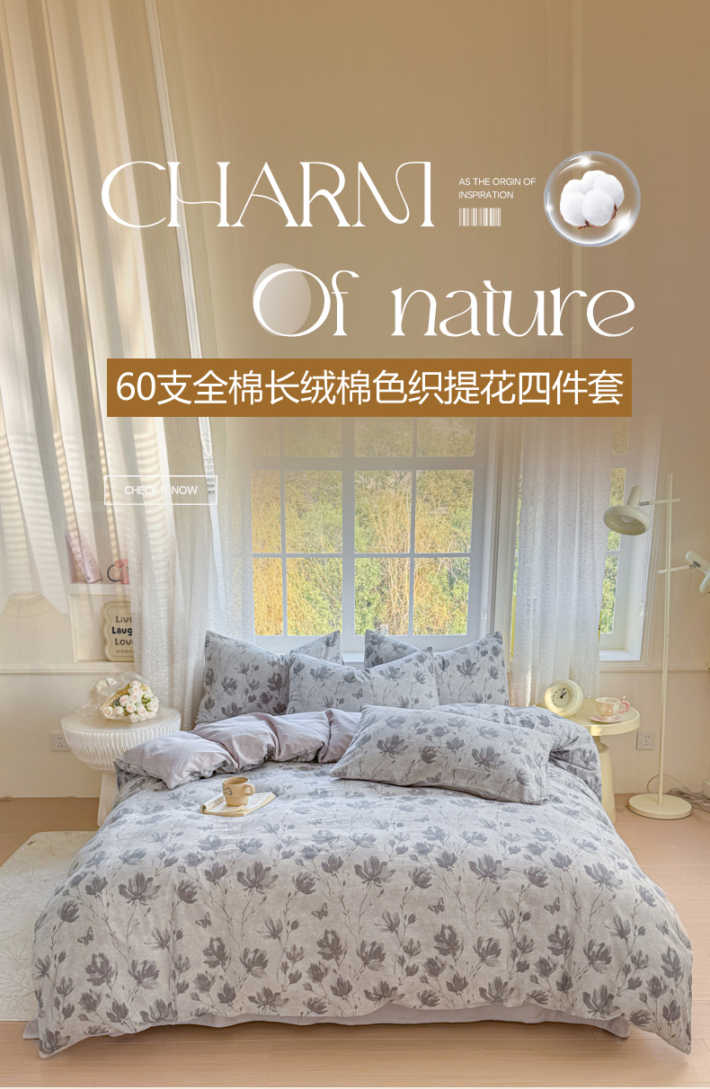 当前位置: 91家纺网 > 商品网购 > 床品套件 > 四件套 > 全棉普通四件套 > 疆东 疆东2026新款60支A类全棉长绒棉纯棉色织大提花四件套水洗全棉纯棉厚织色织提花肌理被套四件套单品 春序灰