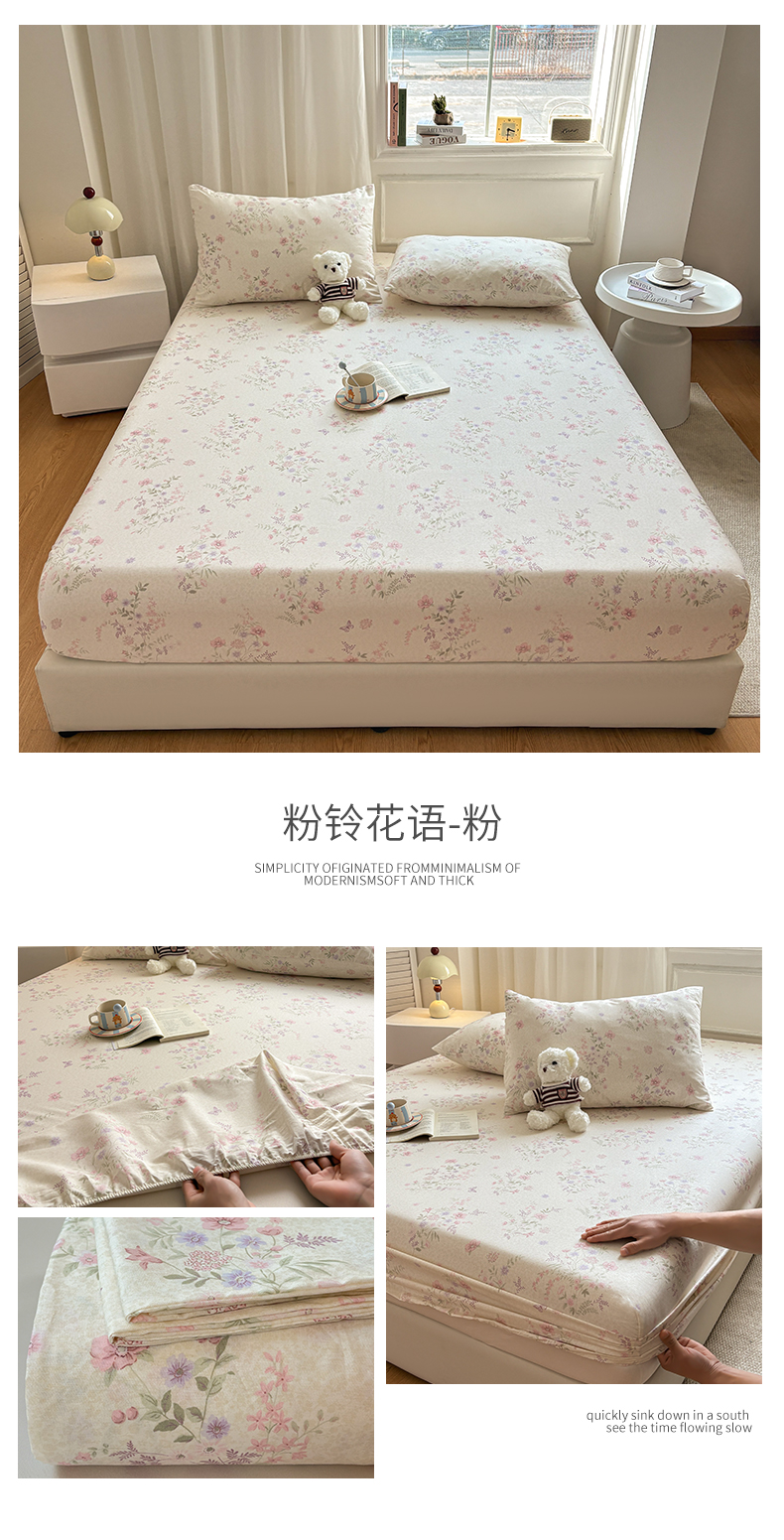 (总)居眠 2025新款防水夹棉床笠-清雅,清雅-粉色,清雅-灰色,清雅-卡其,清雅-绿色,清雅-米白,清雅-深蓝
