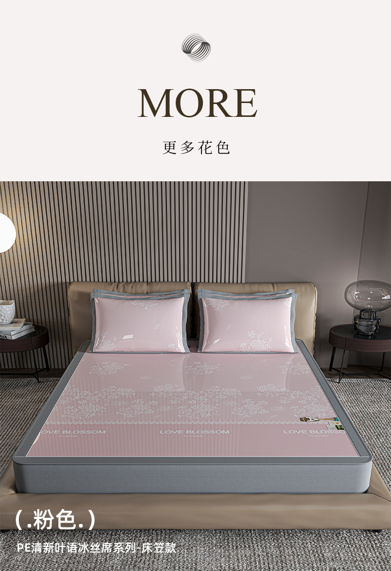 (总)小牛席业 2026春夏新款【实拍风格】PE凉感凉席席子-轻奢赫本(床笠款),轻奢赫本-灰色,轻奢赫本-粉色,轻奢赫本-蓝色,轻奢赫本-香槟
