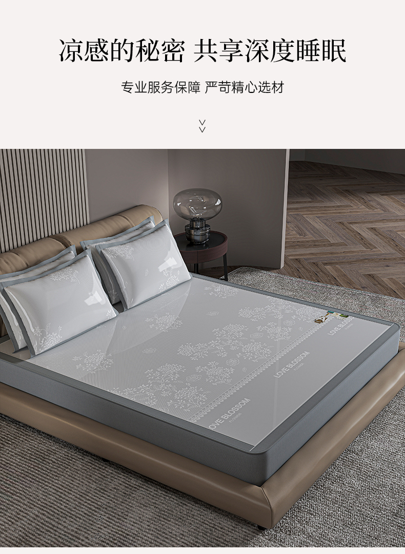 (总)小牛席业 2026春夏新款【实拍风格】PE凉感小碎花提花冰丝席,灰色,粉色,蓝色,抹茶,香槟