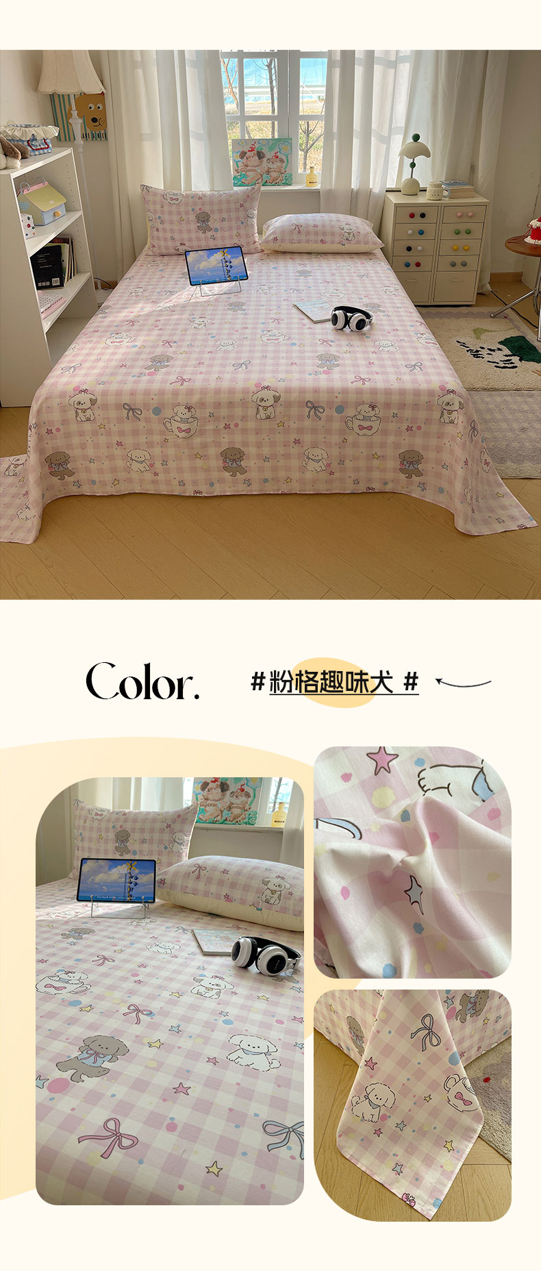 商品名称:六巷胡同 2026新款40支全棉13070INS卡通全棉单品床单 组合叠拍图
