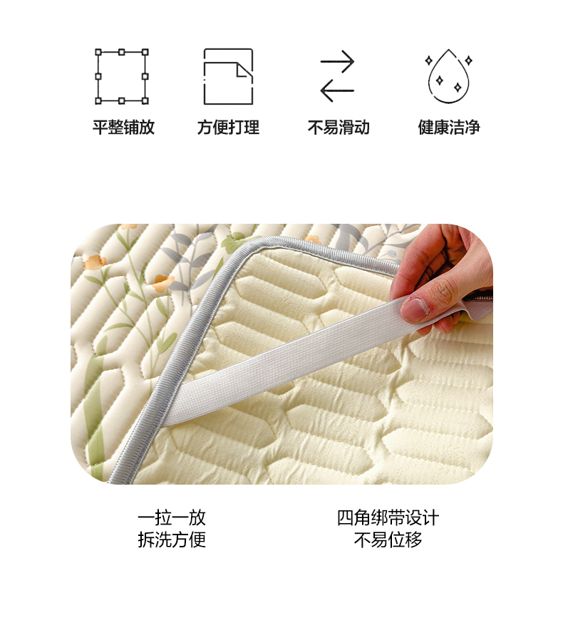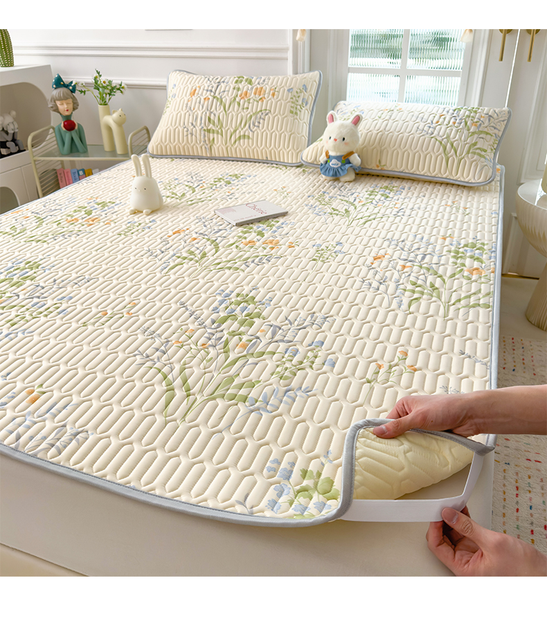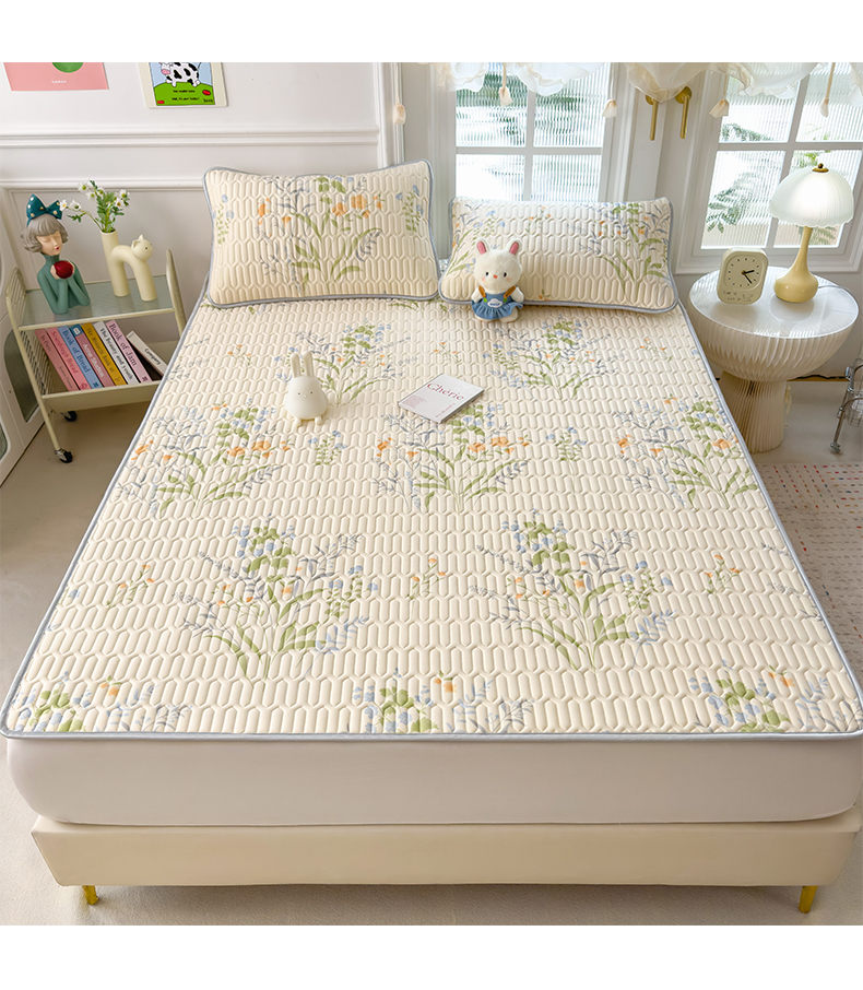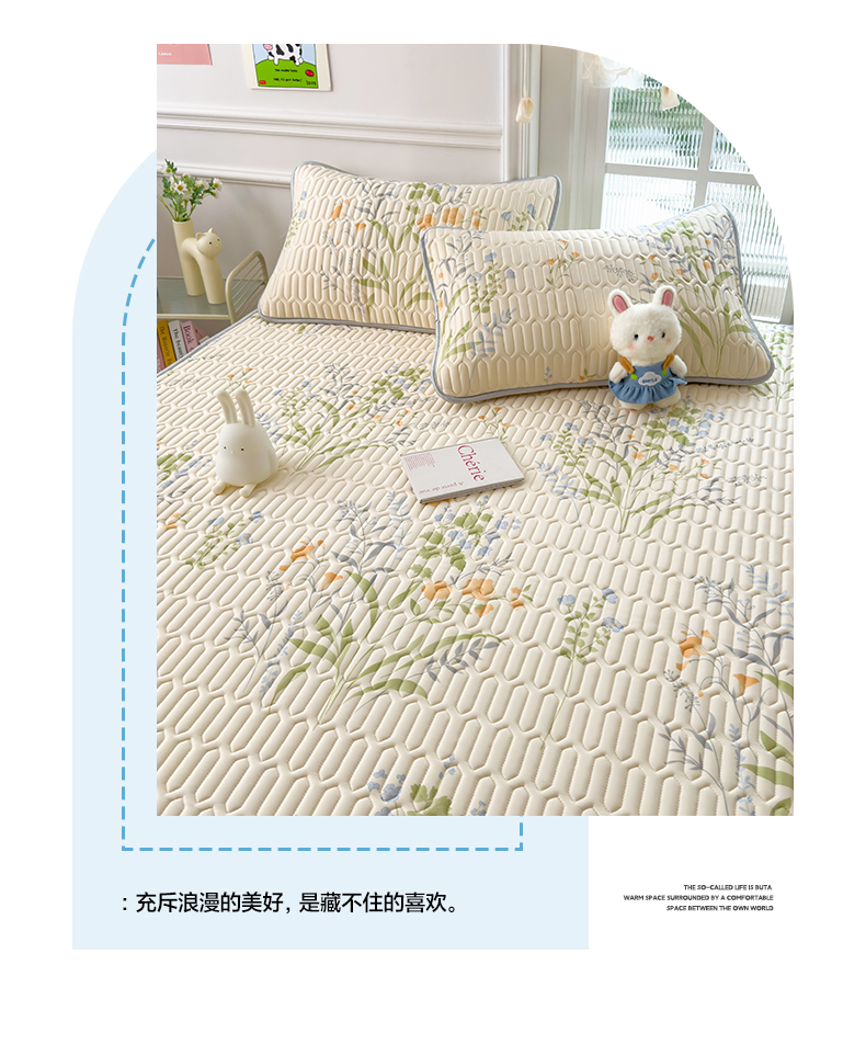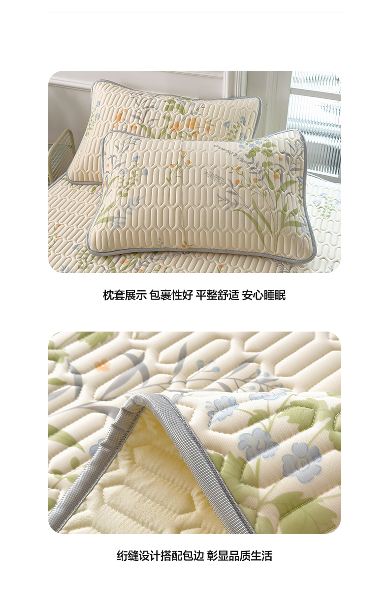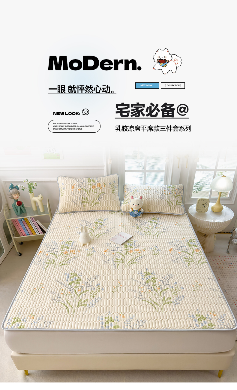 摩妮卡 2026新款数码大版小清新乳胶凉席床席款三件套-场景一 清新花语