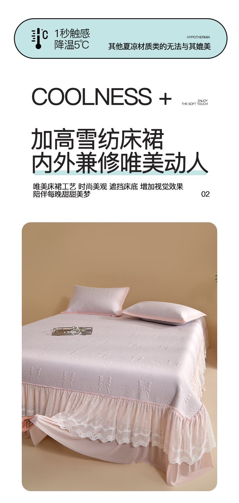 商品名称:(总)航途席业 2026新款A类凉感豆豆床裙款凉席三件套-系列一