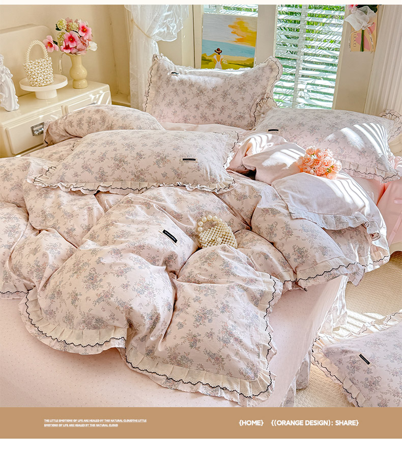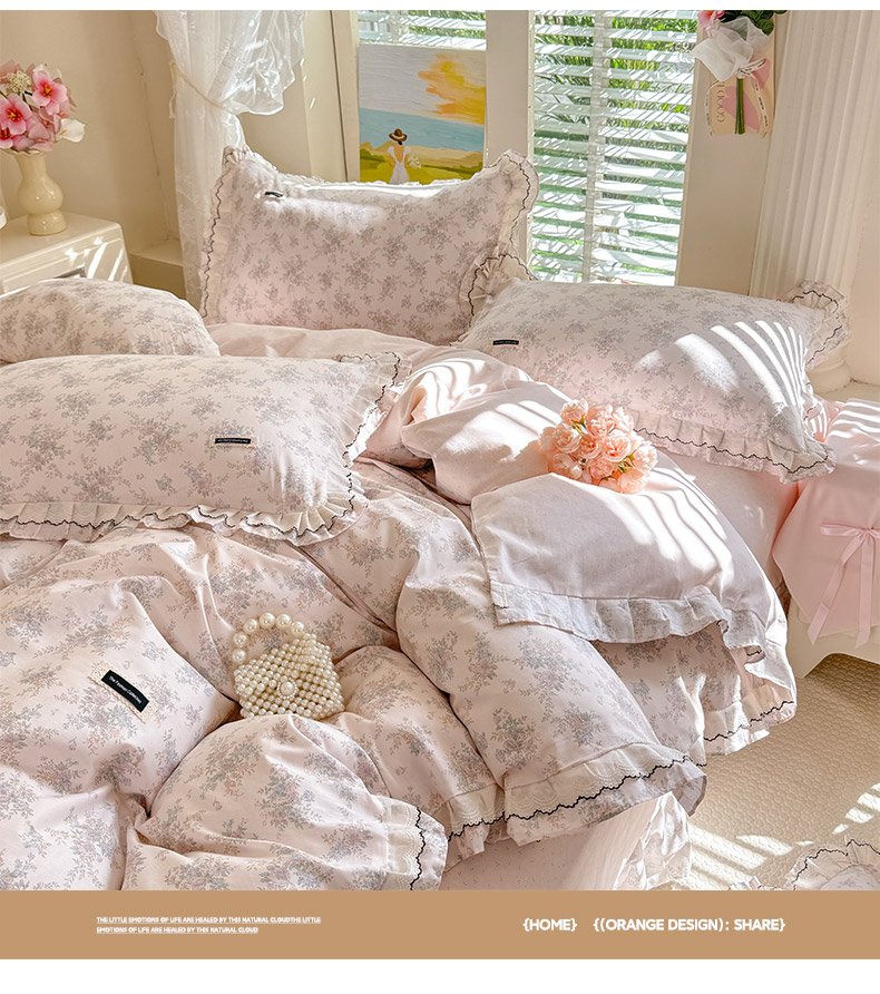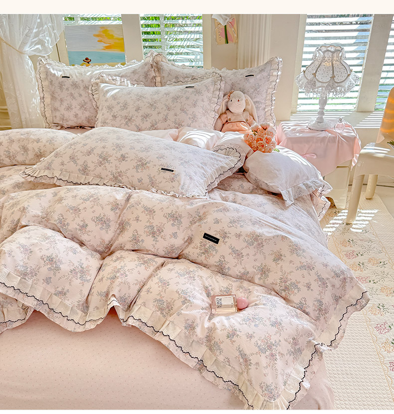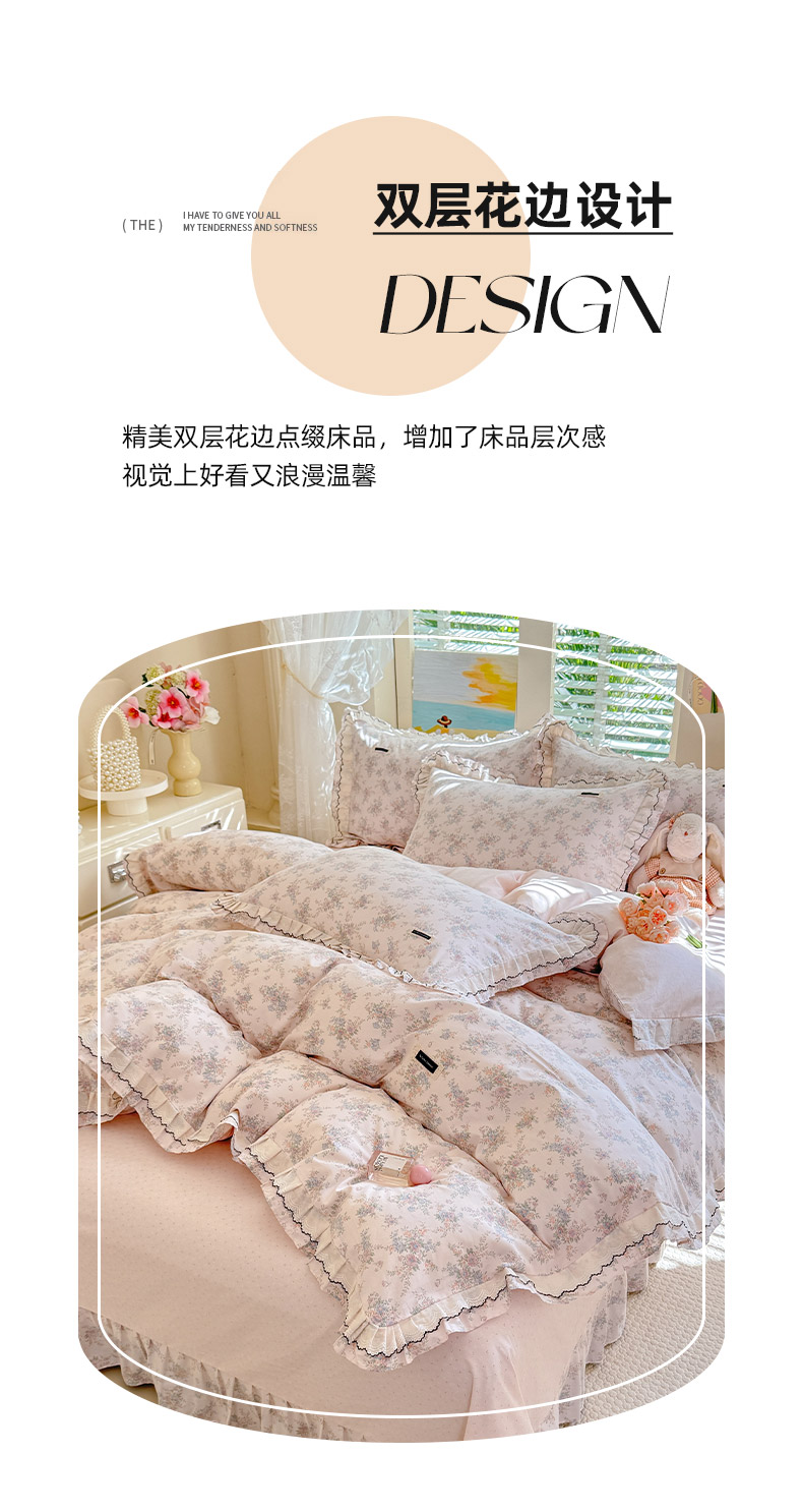 (总)艾唯希2025新款全棉小香风工艺四件套纯棉小花边碎花被套韩式公主风,初朵,春漾,漫丁蔷薇,觅秋,密玲花语,慕归十里,小青藤-米,雅集,樱花