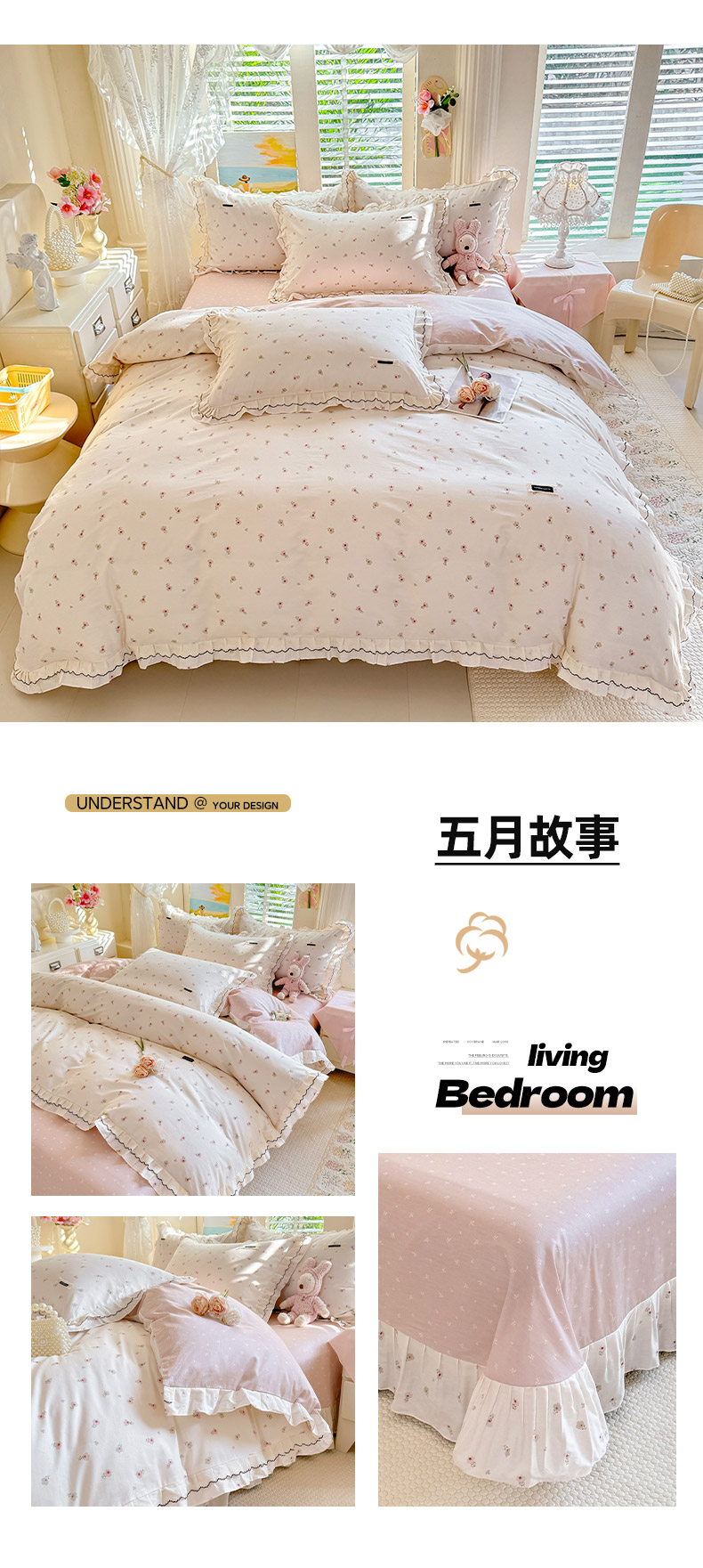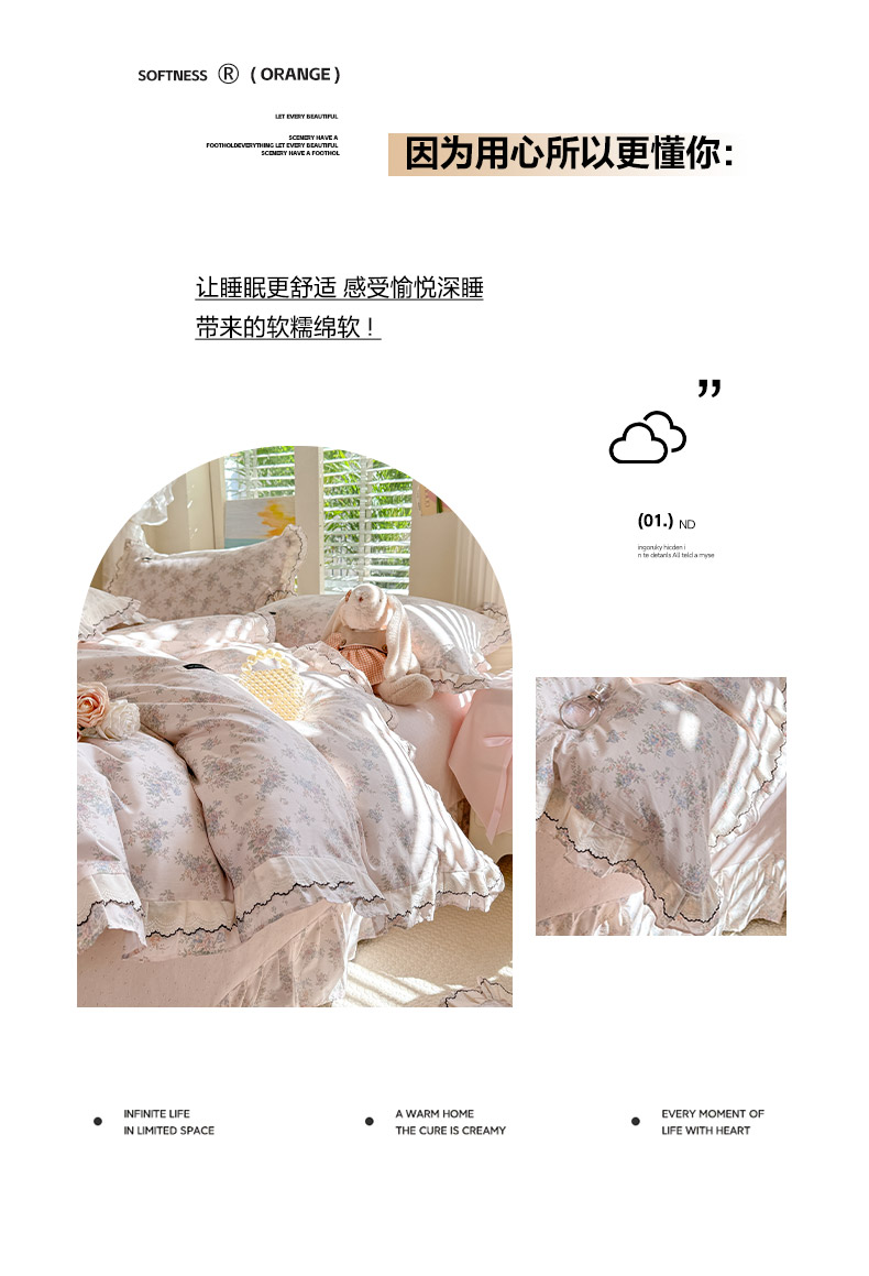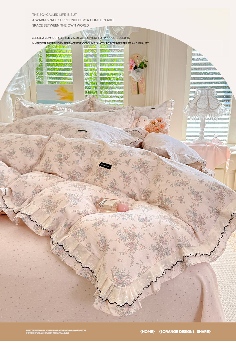 (总)艾唯希2025新款全棉小香风工艺四件套纯棉小花边碎花被套韩式公主风,初朵,春漾,漫丁蔷薇,觅秋,密玲花语,慕归十里,小青藤-米,雅集,樱花