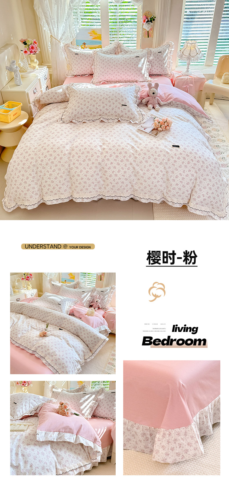 (总)艾唯希家纺 2026新款全棉双层花边工艺四件套-第二批,凝望,樱时-蓝紫,粉嫣花恋,桃霓-粉,云琳月影,艾菲妮,五月故事,樱桃香,樱时-粉