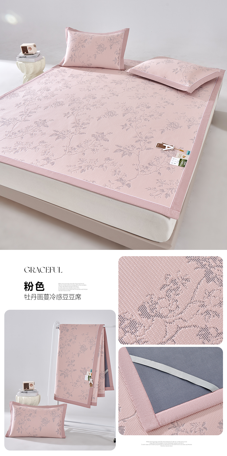 当前位置: 91家纺网 > 商品网购 > 床上用品 > 凉席 > 冰丝席 > (总)小牛席业 2026新款牡丹花蔓冷感豆豆席凉席席子凉席藤席冰藤席冰丝席竹席乳胶席