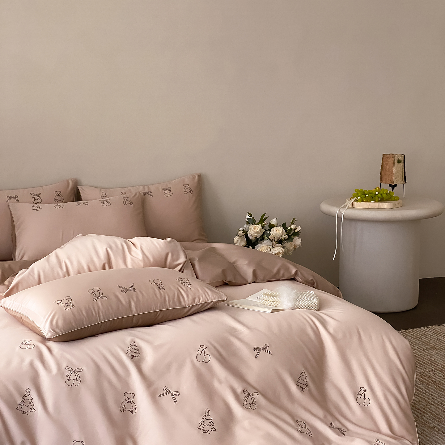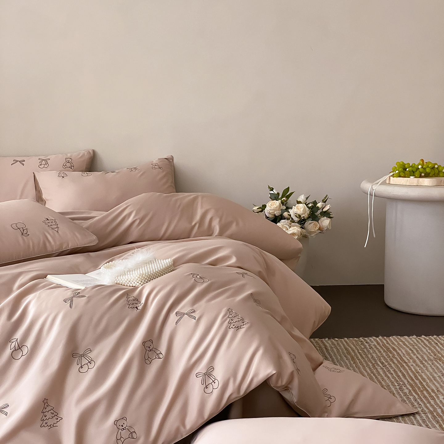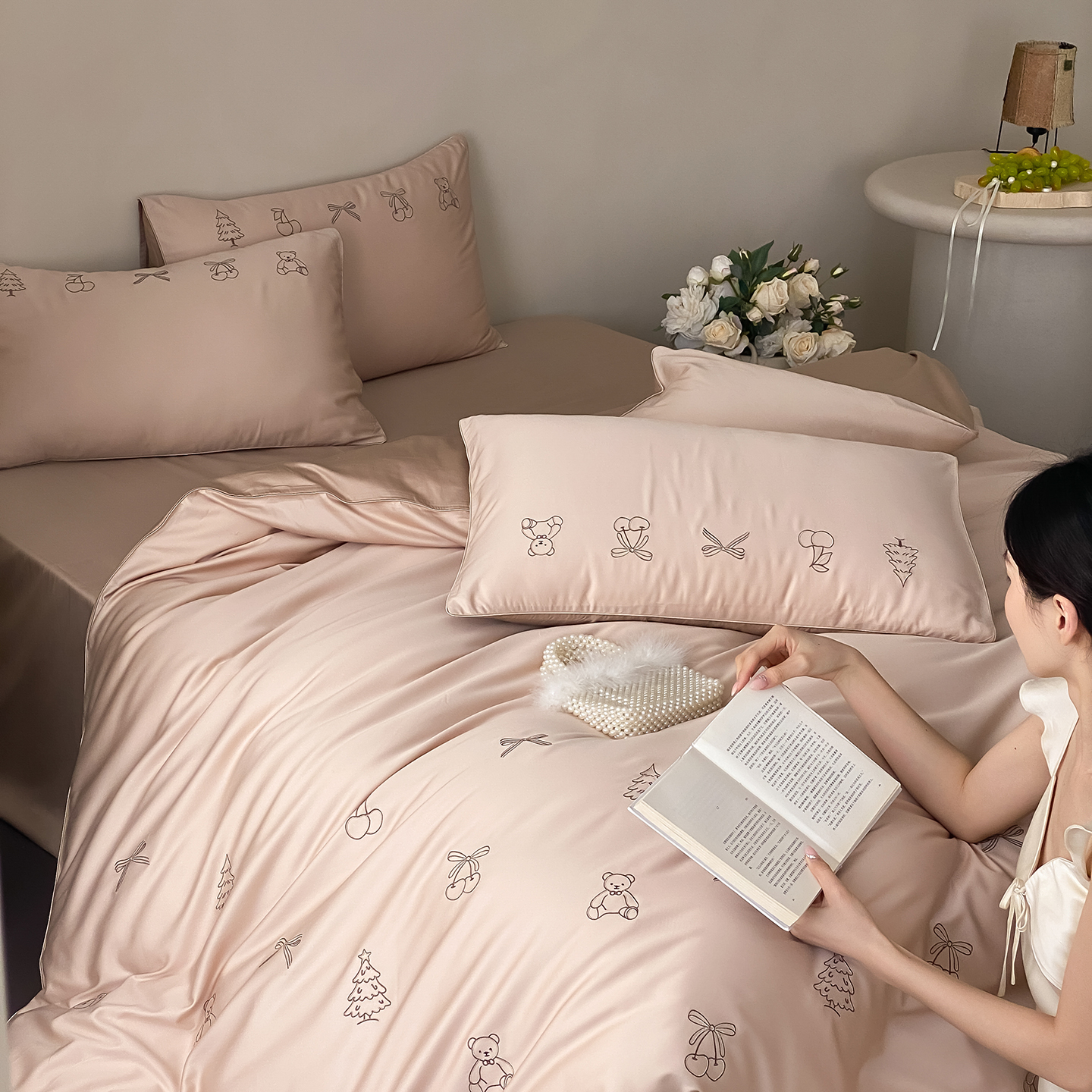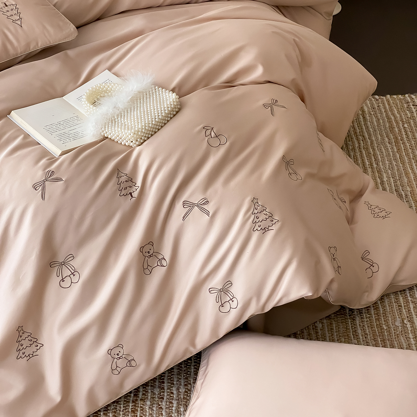 (总)曼布缇 2026新款长绒棉四件套-青春记忆(会员-20,券后308起),青春记忆-浅粉,青春记忆-香槟咖