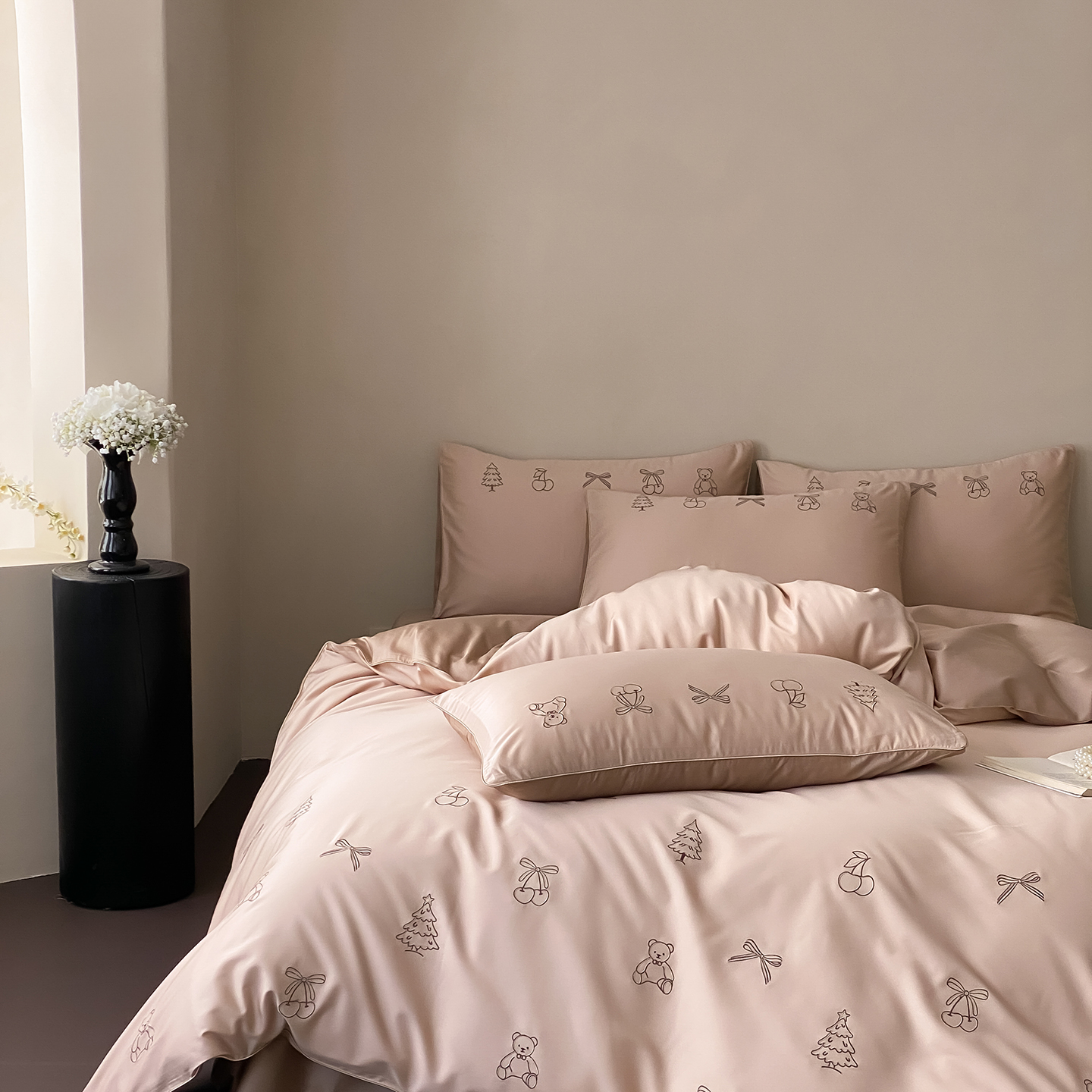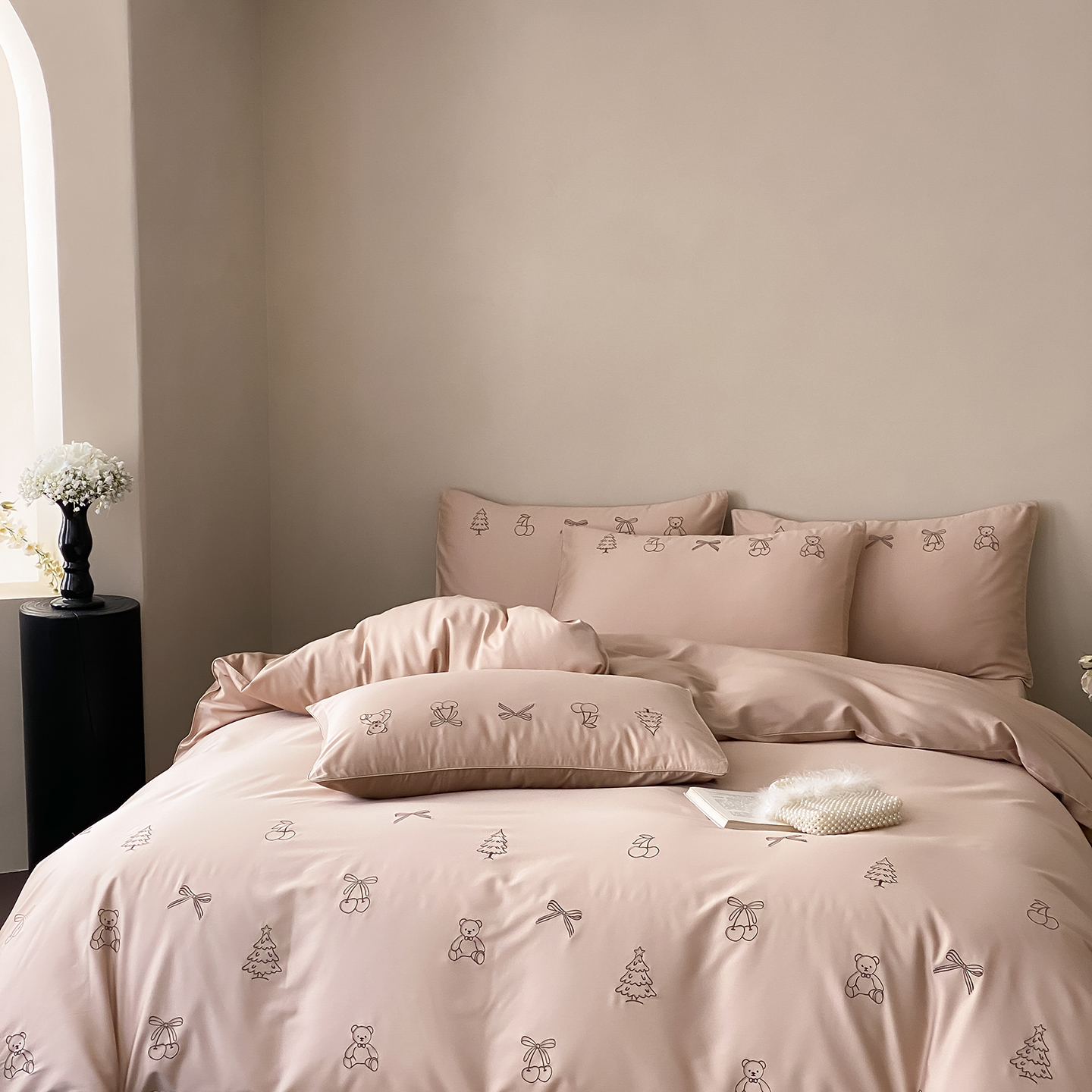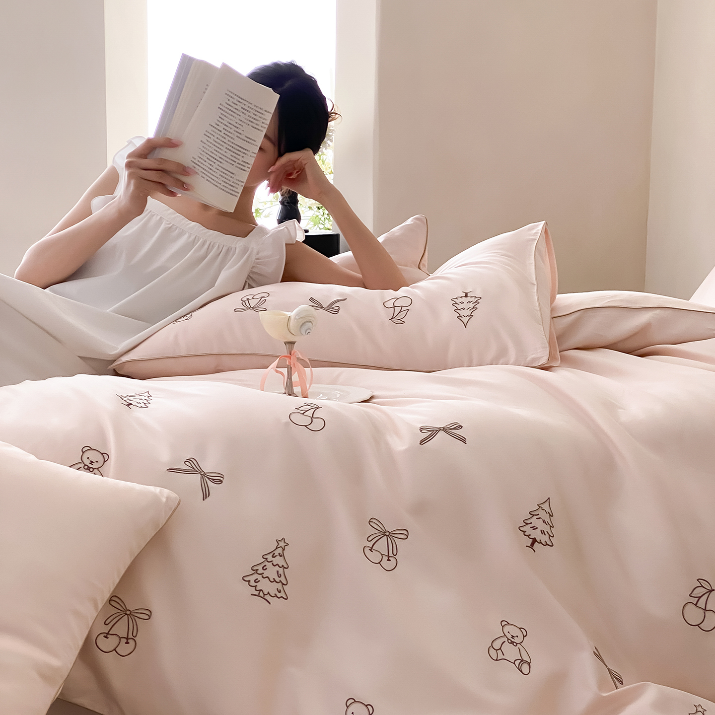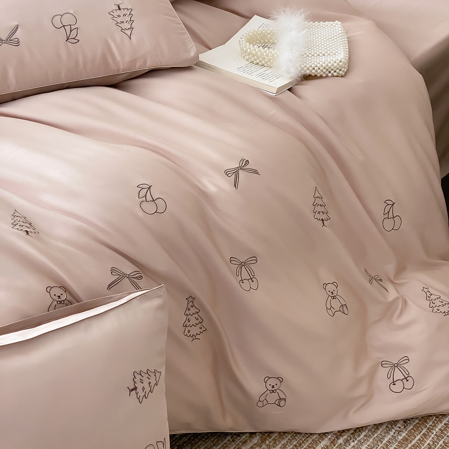 (总)曼布缇 2026新款长绒棉四件套-青春记忆(会员-20,券后308起),青春记忆-浅粉,青春记忆-香槟咖