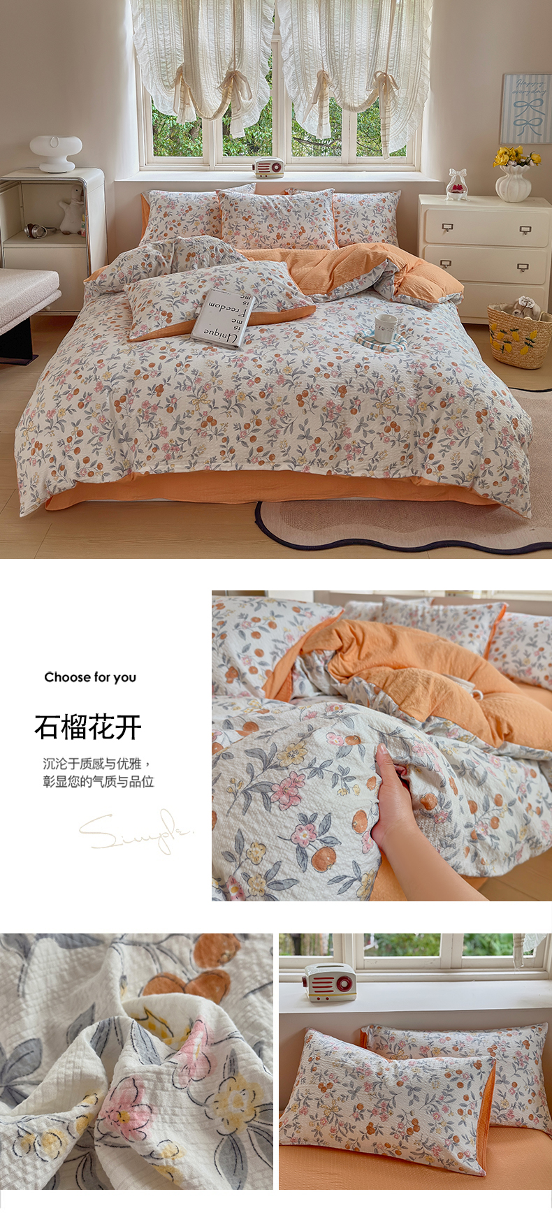 当前位置: 91家纺网 > 商品网购 > 床品套件 > 四件套 > 其它四件套 > 桔禾家纺 2026春夏新款小清新A类超柔泡芙棉泡泡纱双层纱四件套 清甜印记