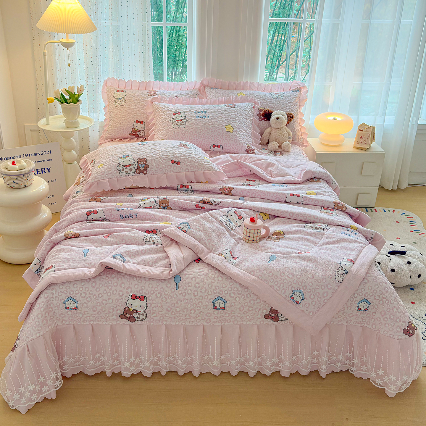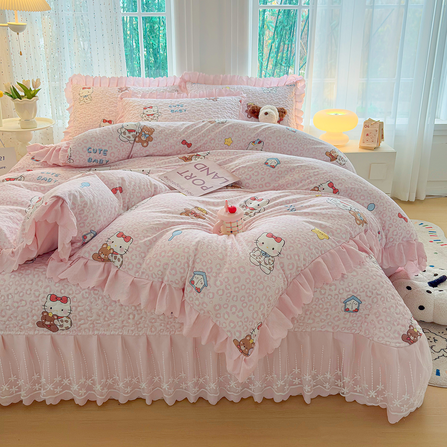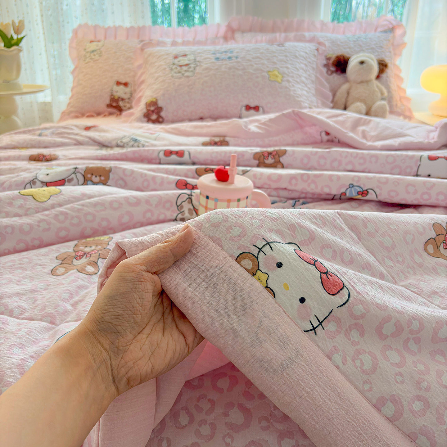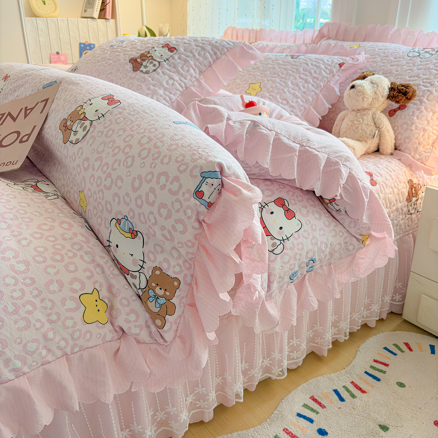 当前位置: 91家纺网 > 商品网购 > 床品套件 > 四件套 > 夏被四件套 > 绒耀家纺 2026春夏直播爆款泡芙棉云感双层纱皱皱纱韩式花边夏被四件套 豹纹KT