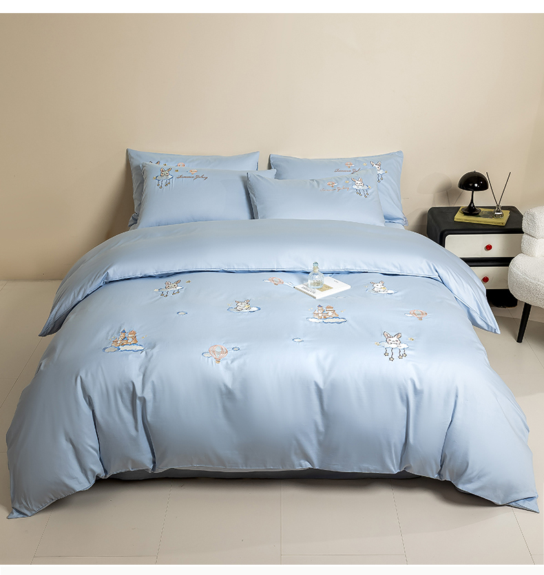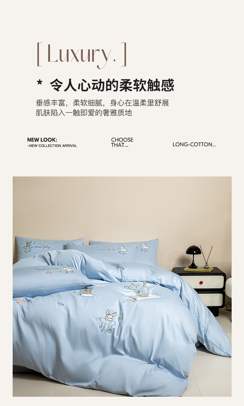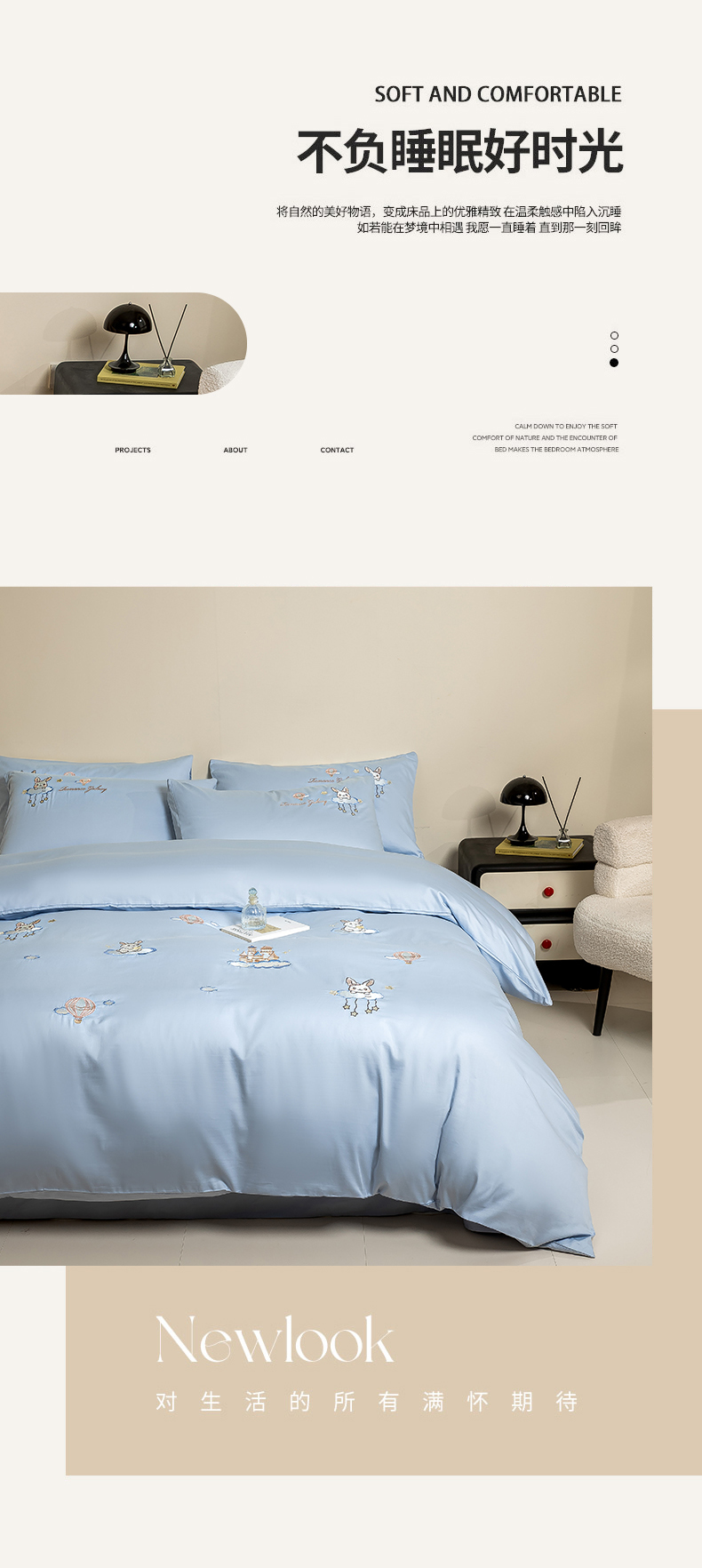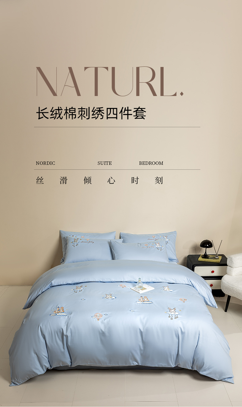 当前位置: 91家纺网 > 商品网购 > 床品套件 > 四件套 > 长绒棉四件套 > 绒掌柜家纺(品质焕新) 2026新款100S长绒棉纯棉精密刺绣四件套-云境系列-版权产品-礼盒装 云境-天空蓝