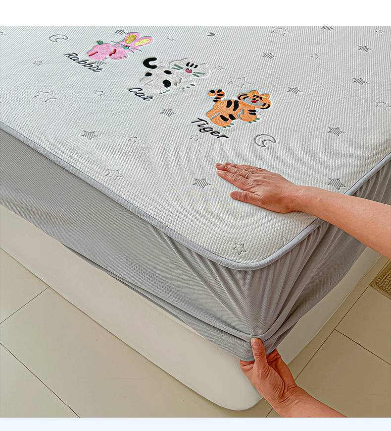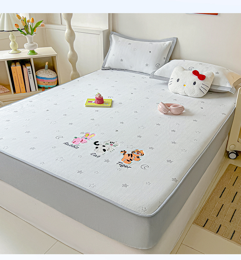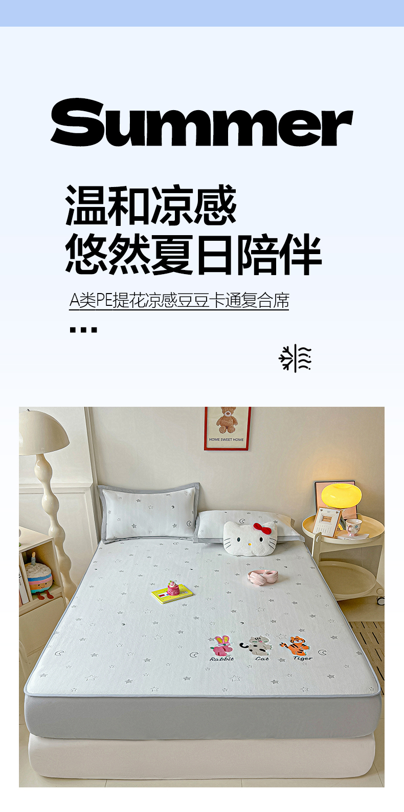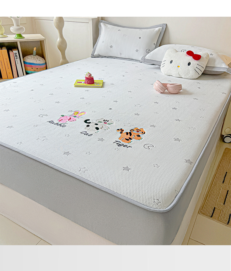 当前位置: 91家纺网 > 商品网购 > 床上用品 > 凉席 > 凉席套件 > 多乐家纺 2026新款星辰系列PE提花凉感豆豆卡通刺绣大包边复合凉席 小老虎-星星月亮-灰(床单款)