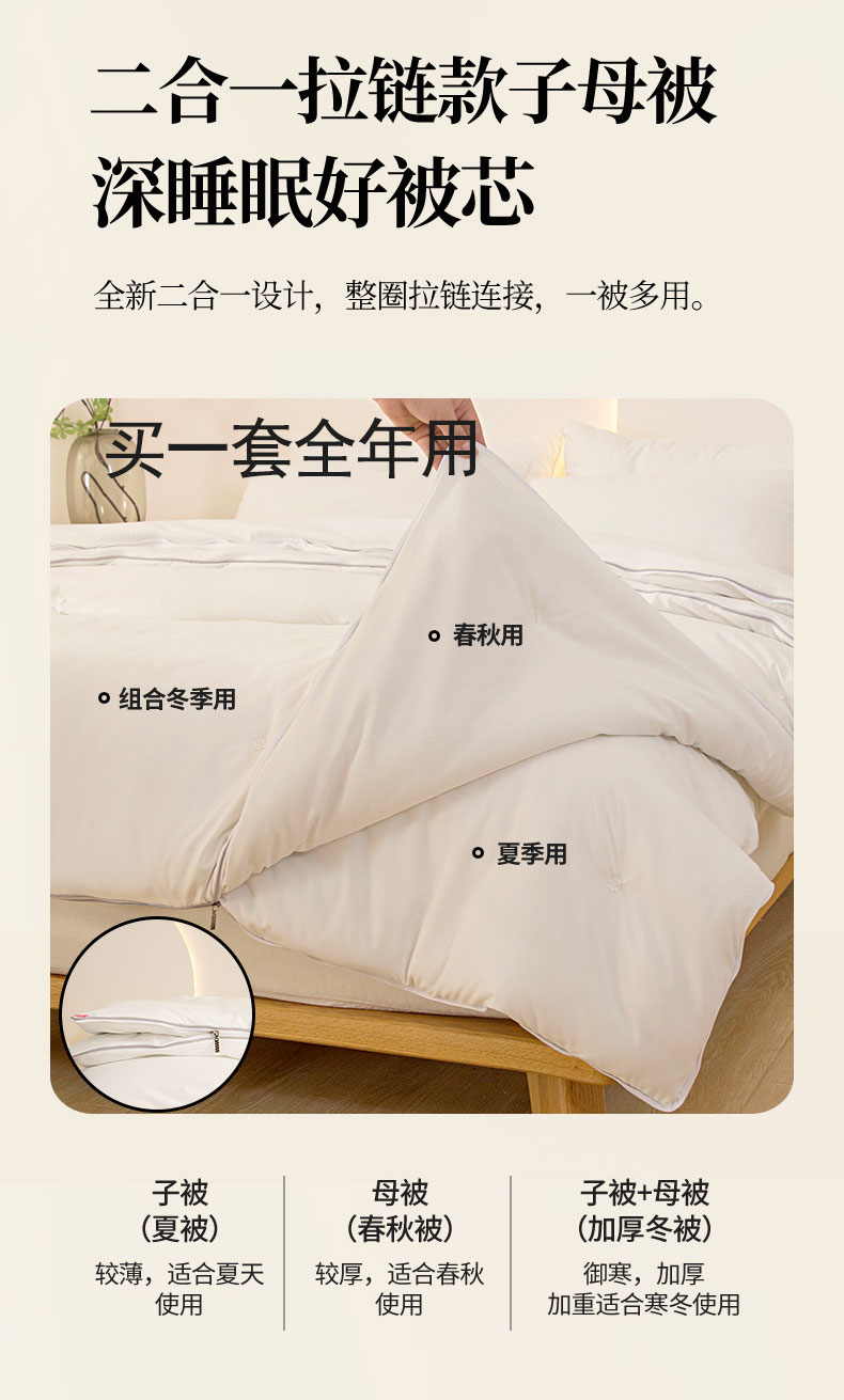 (总)禹祥家纺 2026新款拉链款二合一子母被蚕蛹蛋白春秋被冬被加厚被子被芯