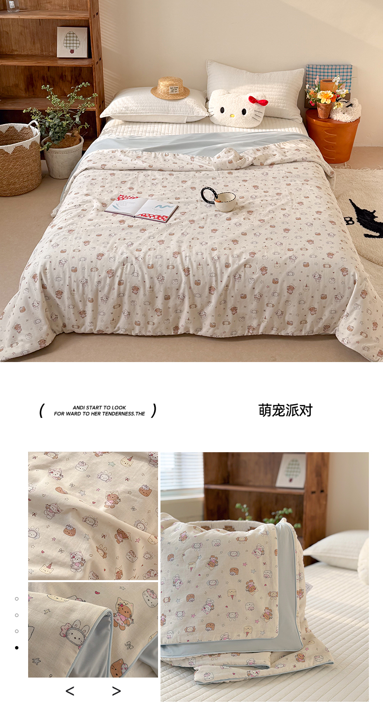 大彩家居 2026新款全棉双层纱凉感夏被 萌宠派对