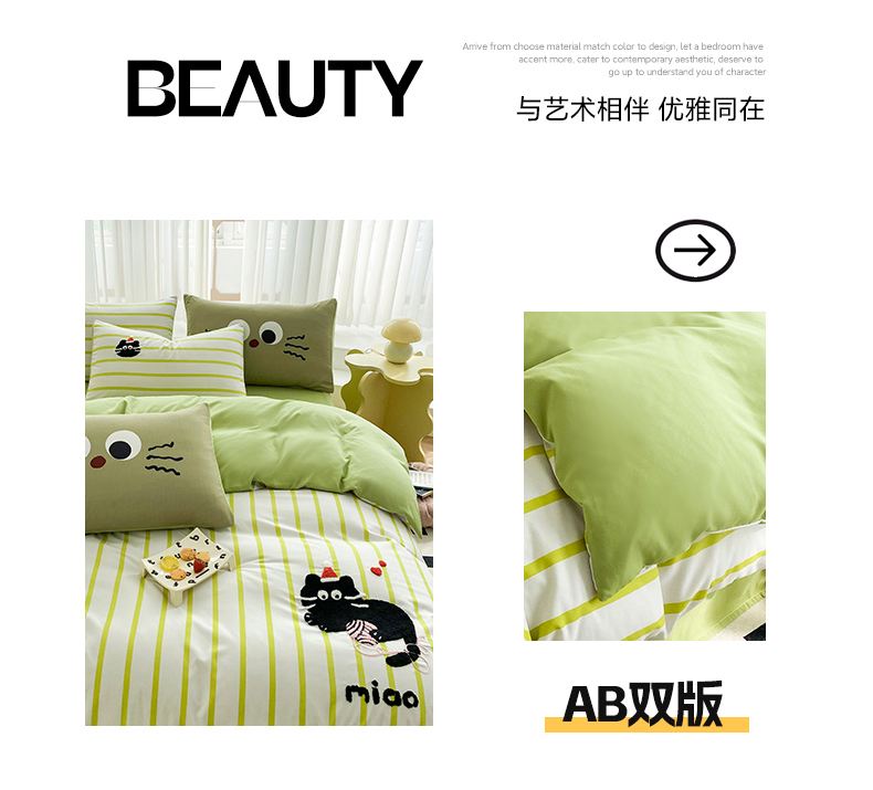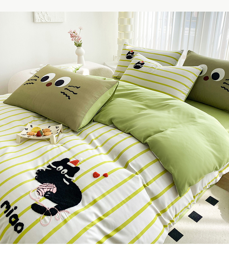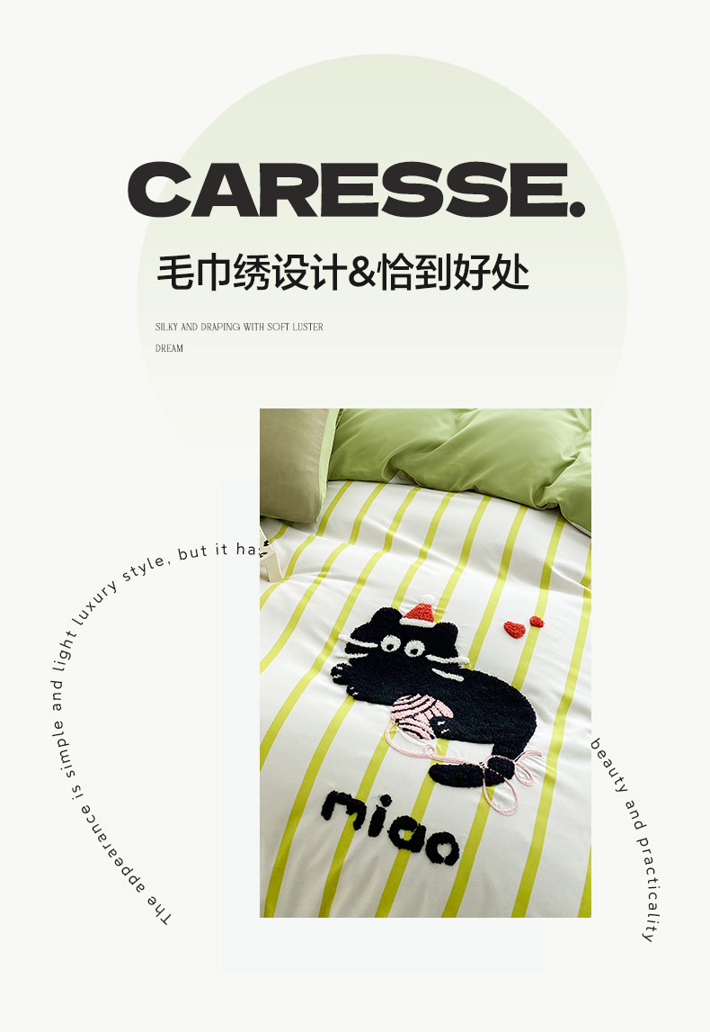 当前位置: 91家纺网 > 商品网购 > 床品套件 > 四件套 > 水洗棉四件套 > 眷恋家纺 2026新款多巴胺水洗棉毛巾绣四件套 猫咪-果绿