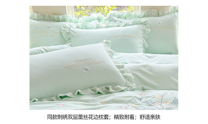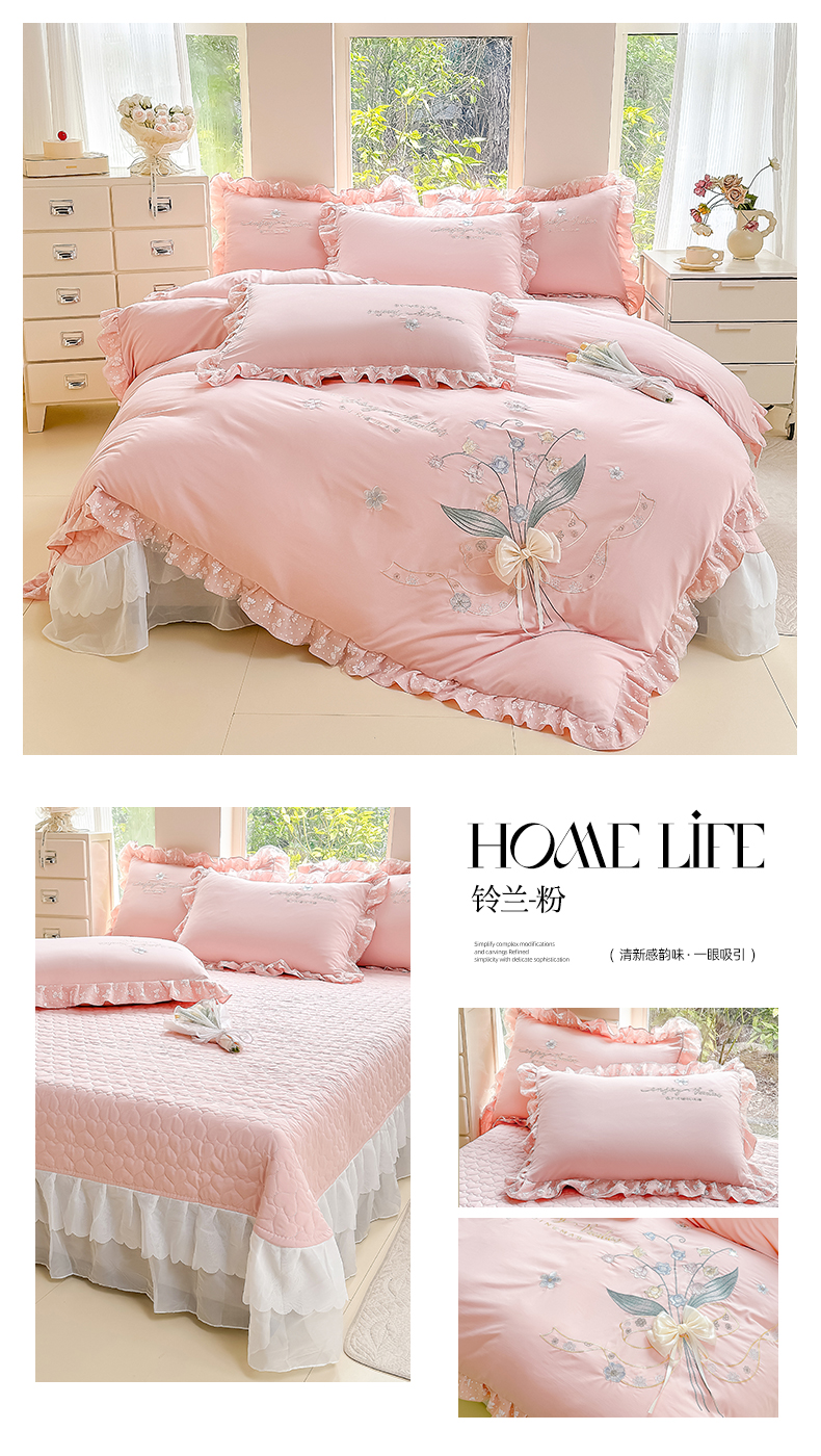 莉迪娅 2026新款A类糯小棉刺绣花边四件套-铃兰系列 铃兰-粉