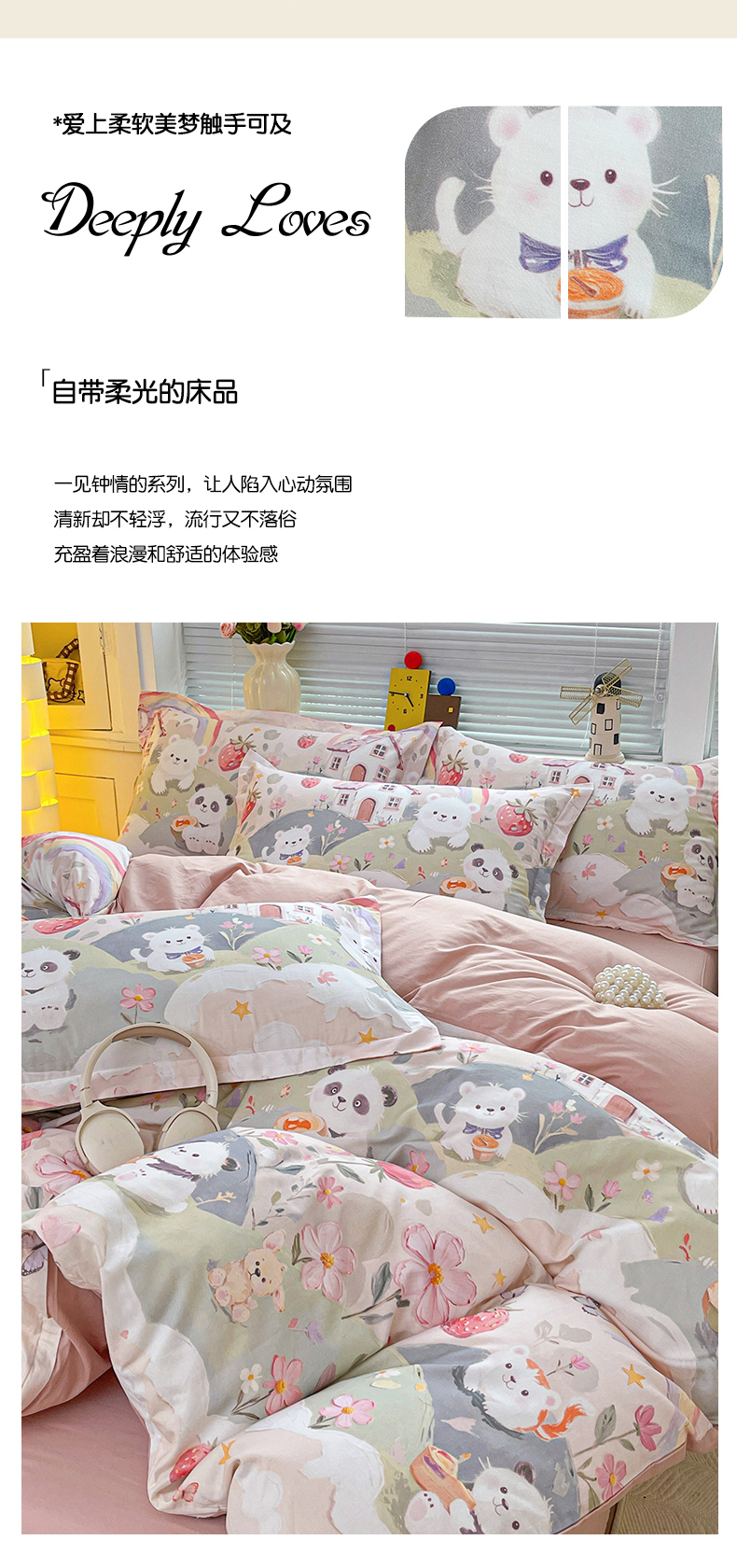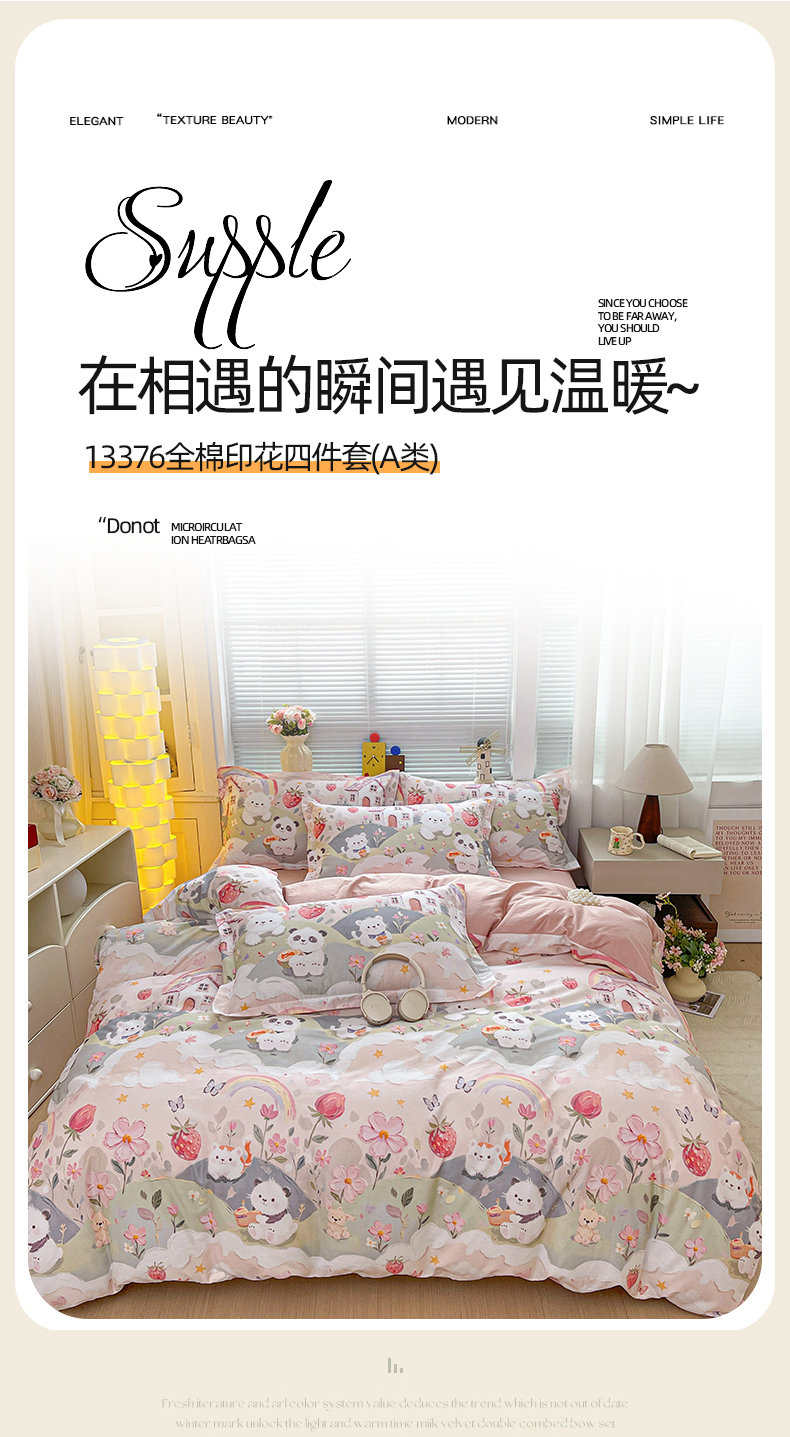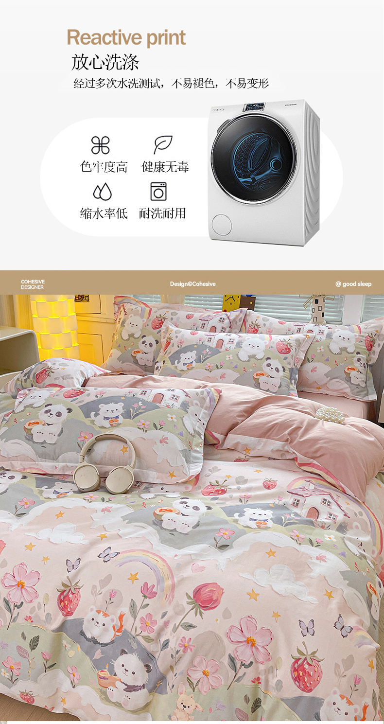 当前位置: 91家纺网 > 商品网购 > 床品套件 > 四件套 > 全棉普通四件套 > 大柏树 2026新款全棉纯棉13376印花四件套 花间小熊