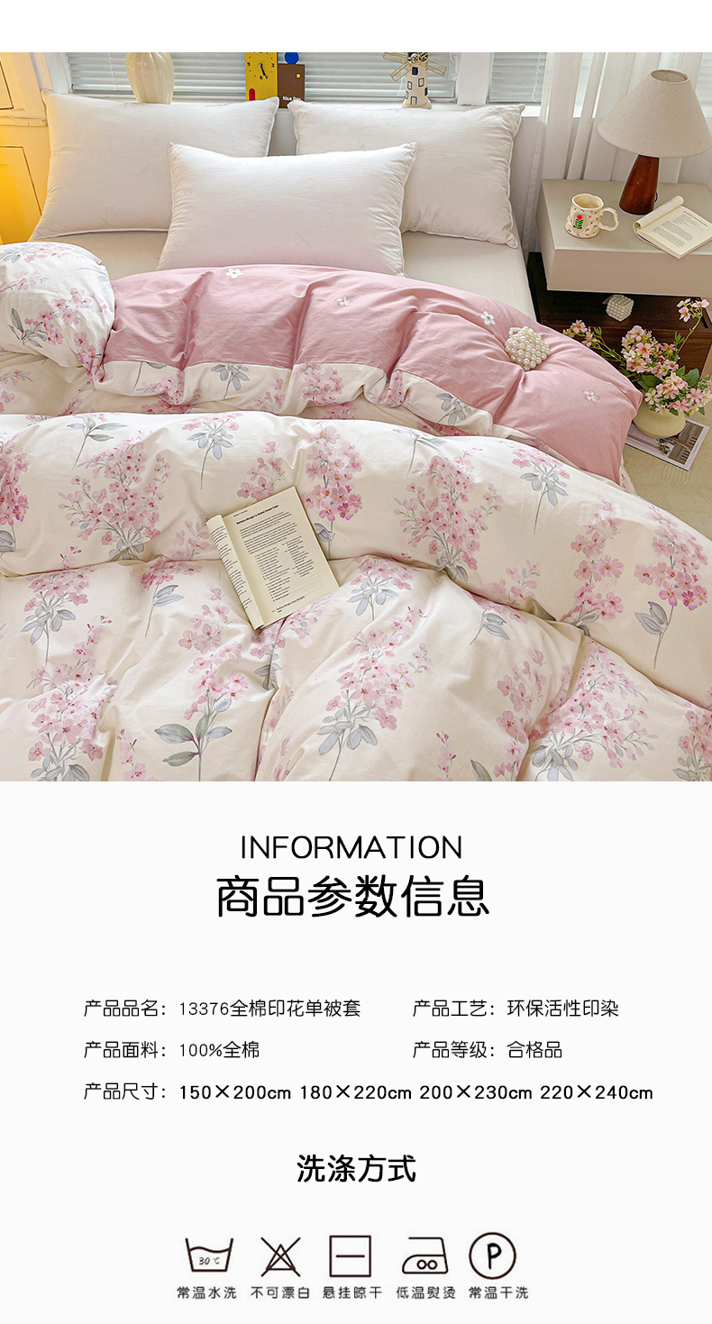 当前位置: 91家纺网 > 商品网购 > 床上用品 > 被套 > 大柏树 2026新款全棉纯棉13376印花单被套单品被套被套单件 花织梦粉