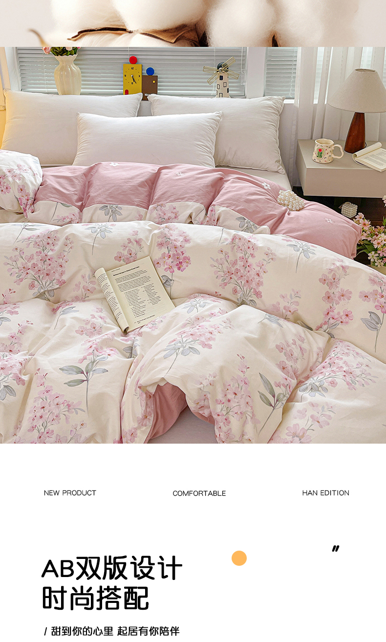 • 91家纺网 家纺一手货源 找家纺 大柏树 2026新款全棉纯棉13376印花单被套单品被套被套单件 花织梦粉