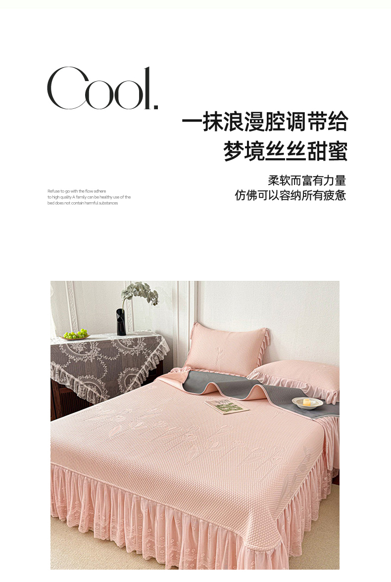 (总)金绣美居 2026新款PE高分子复合凉感席双面提床裙款凉席三件套-忆江南,忆江南-粉色,忆江南-灰色,忆江南-浅绿,忆江南-水蓝