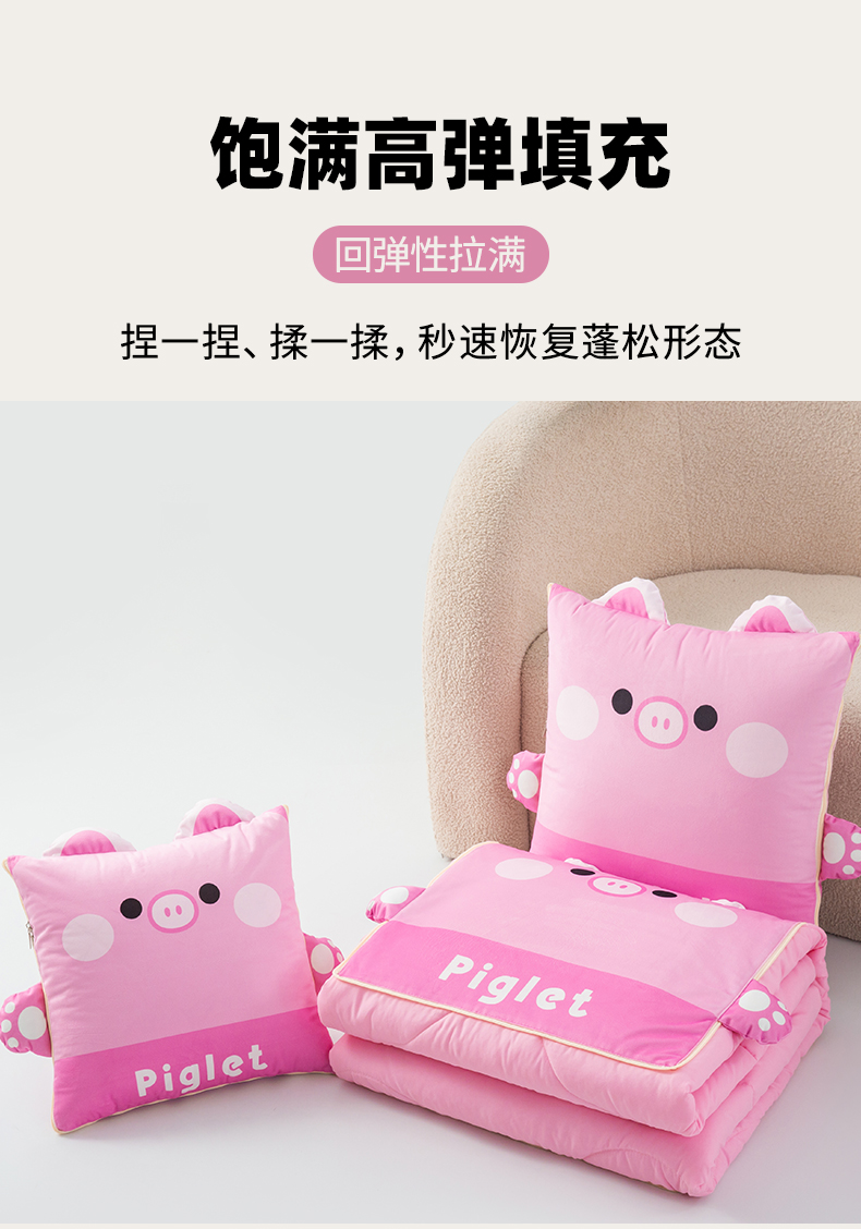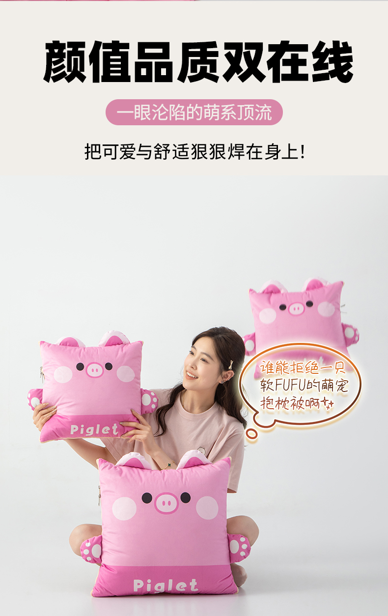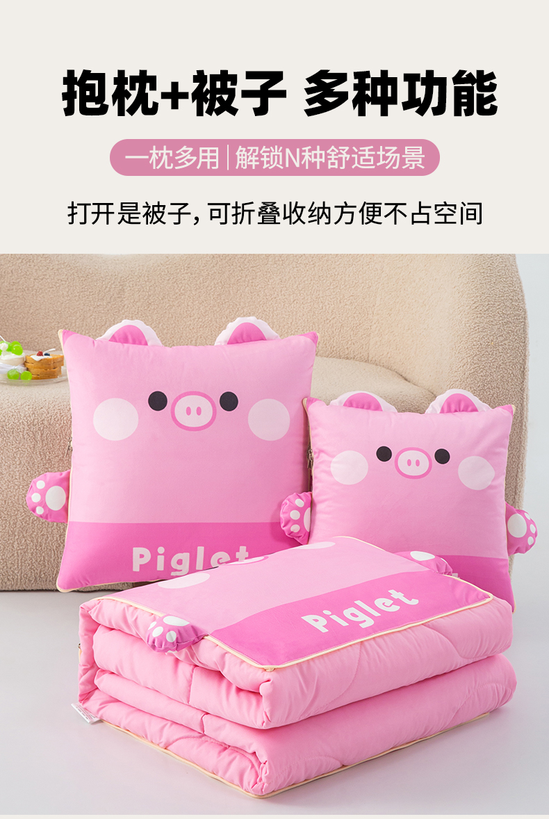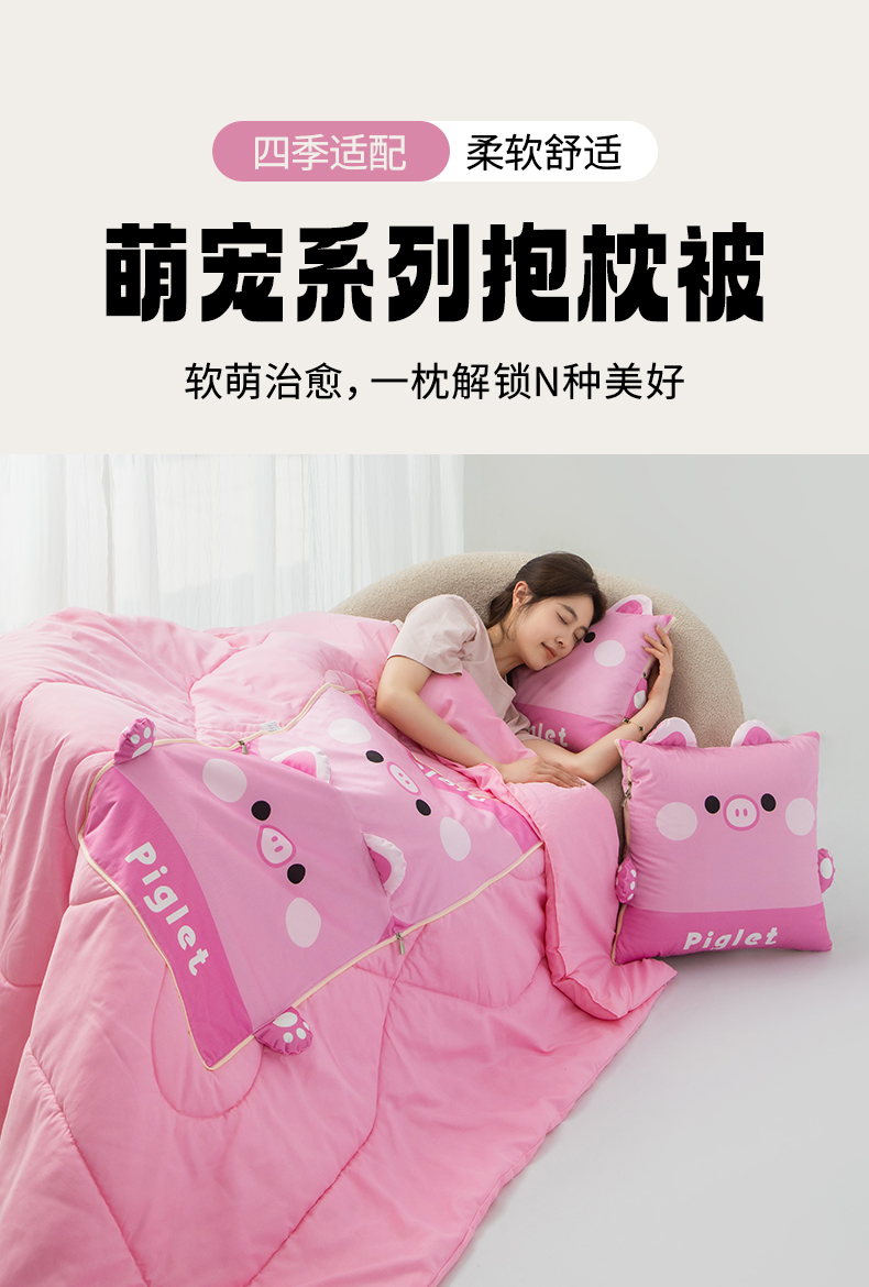 商品名称:雷娜家居 2026新款四季款萌宠系列抱枕被 萌萌猪
