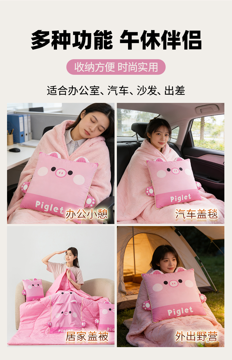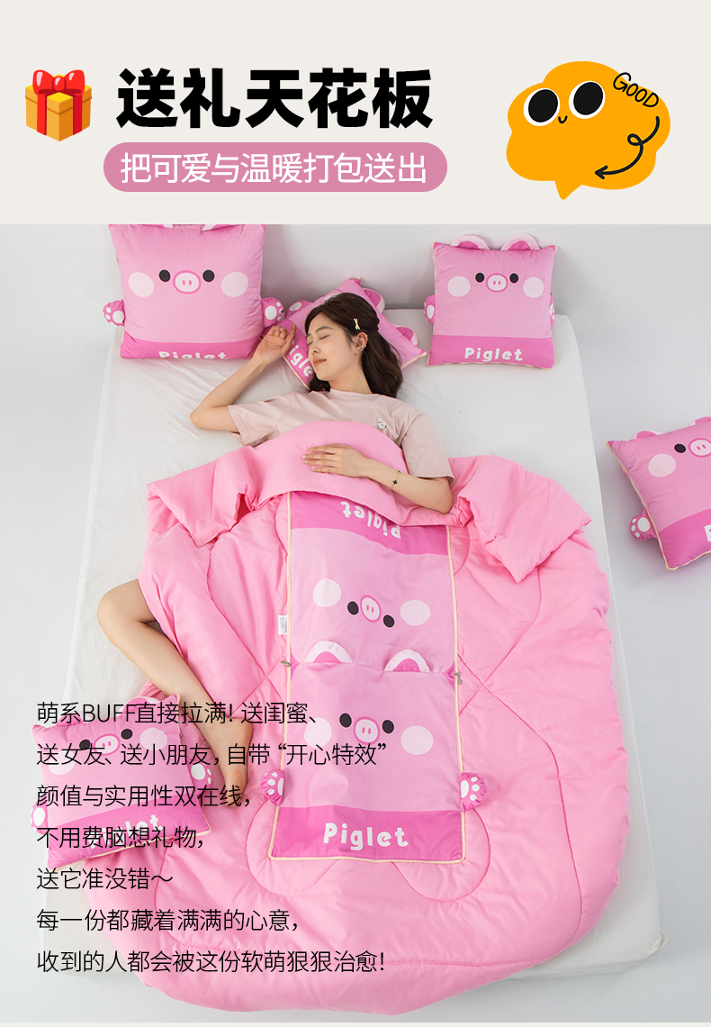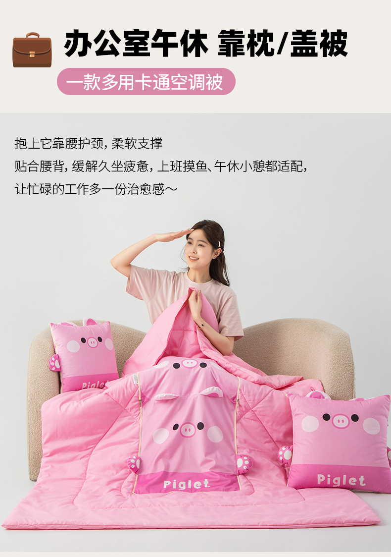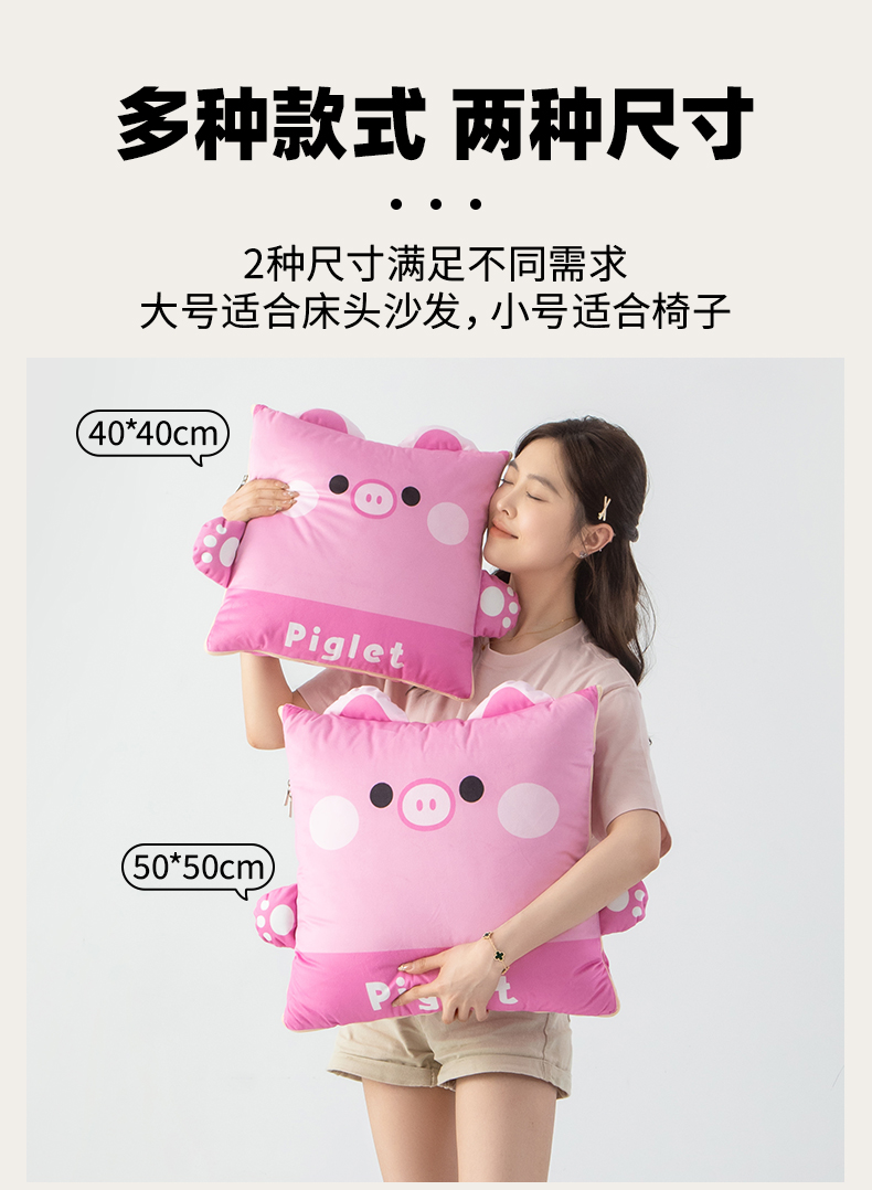 商品名称:雷娜家居 2026新款四季款萌宠系列抱枕被 萌萌猪
