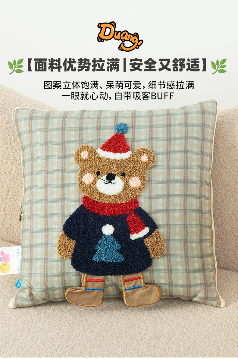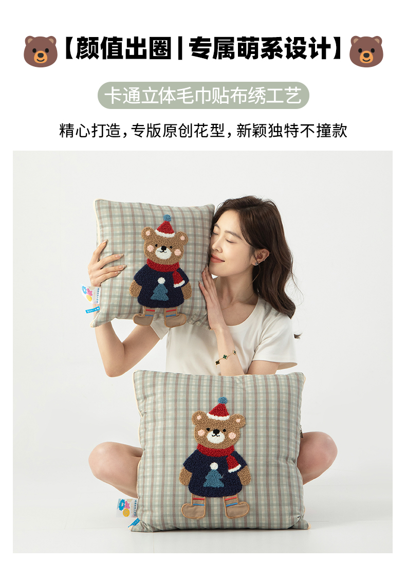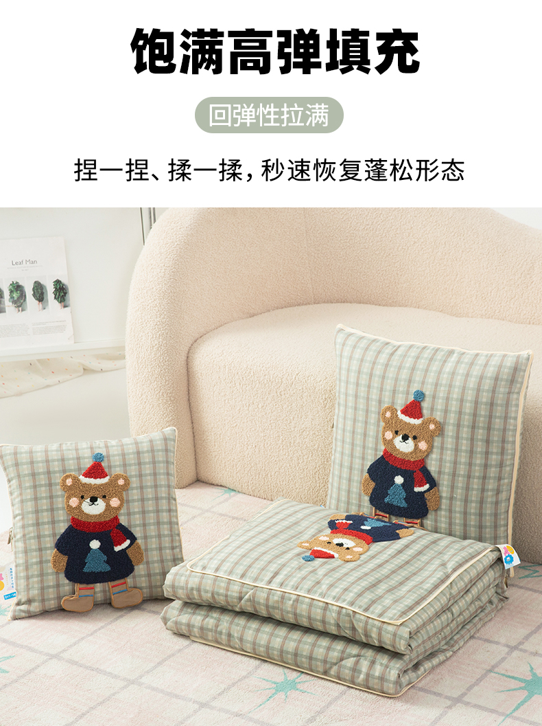(总)雷娜家居 特色手提款帆布面料卡通绣花抱枕被,手提大眼萌,手提小怪鱼,熊猫艾草绿