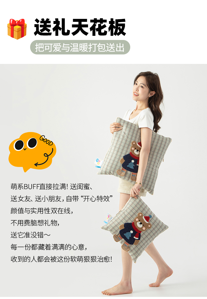 (总)雷娜家居 2026新款升级款帽子熊抱枕被,帽子熊粉,帽子熊蓝