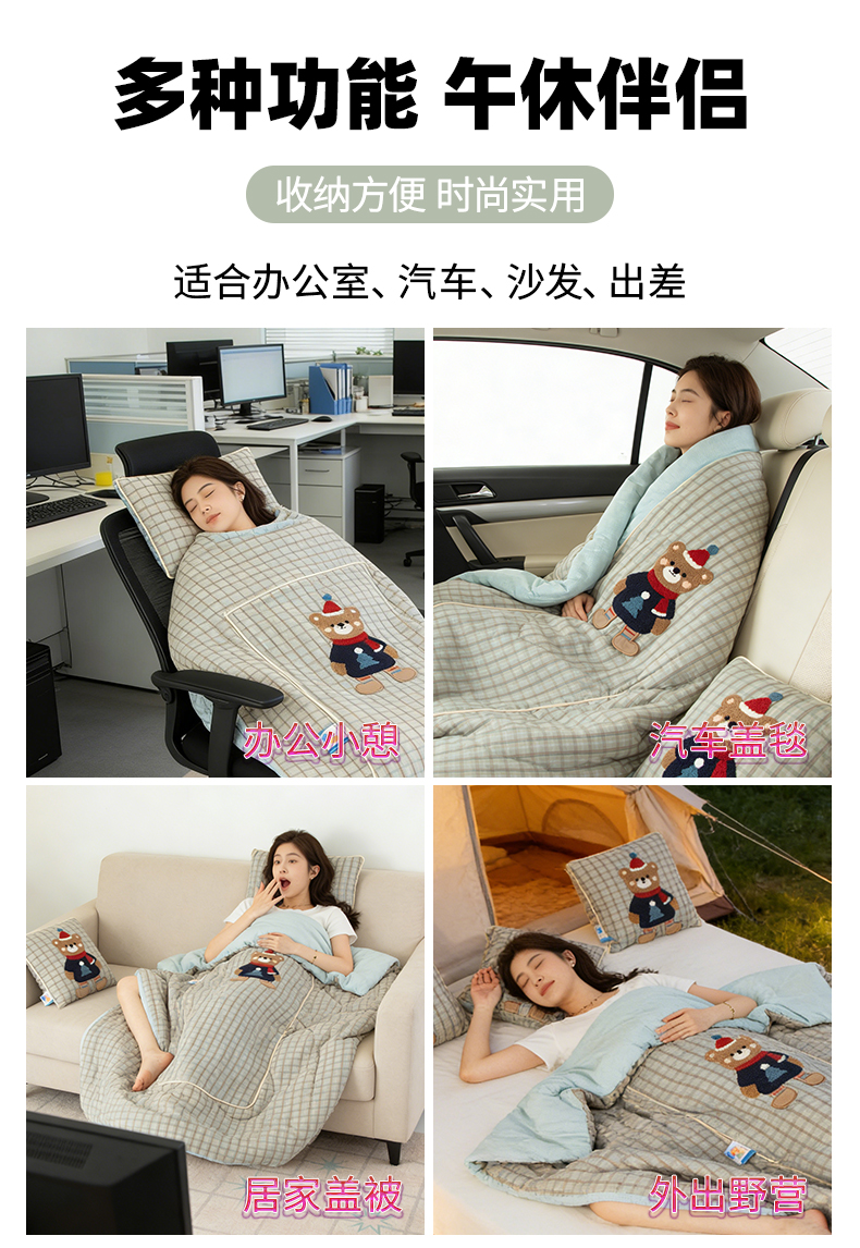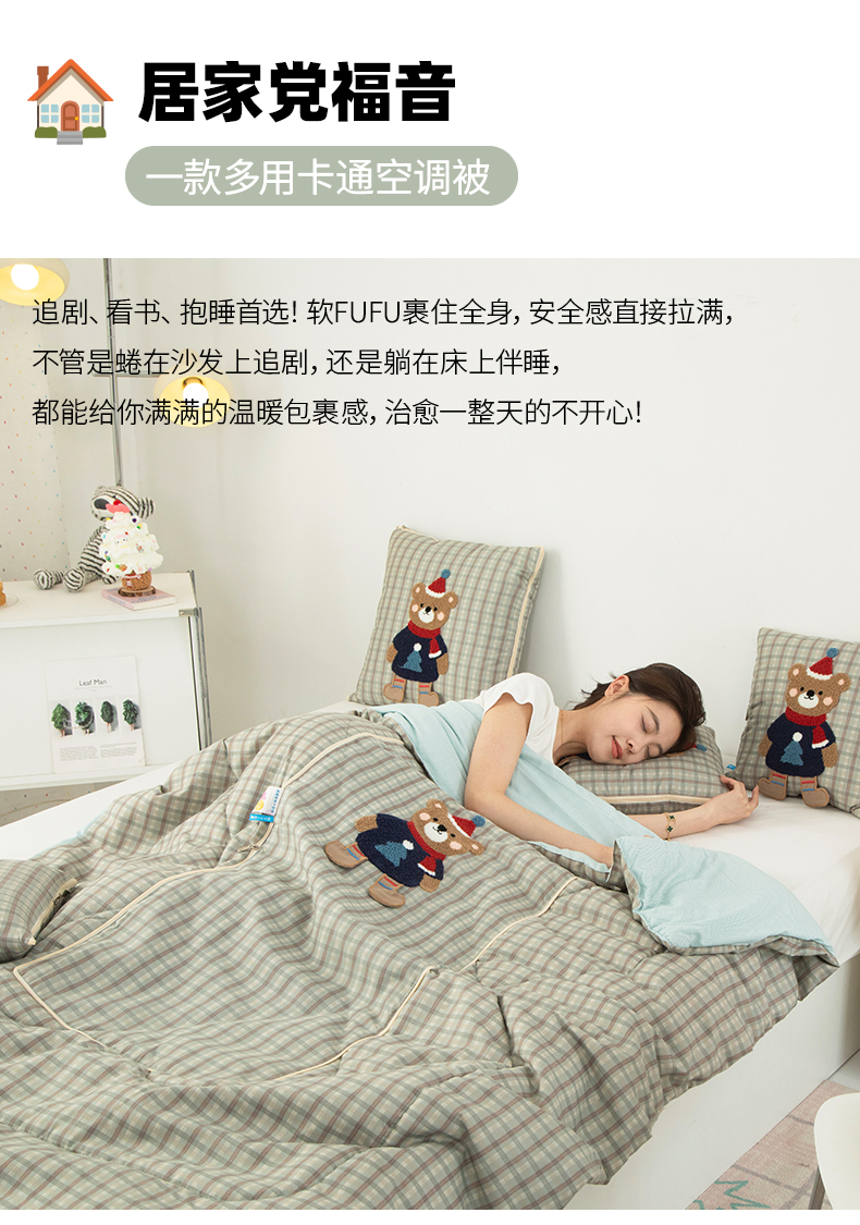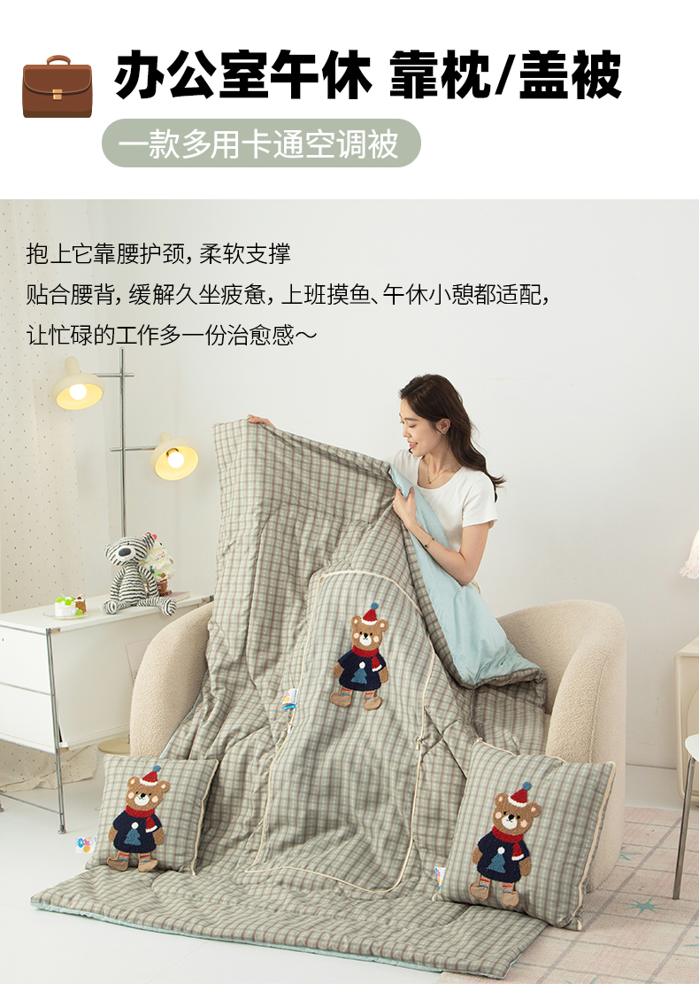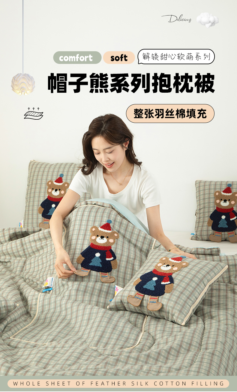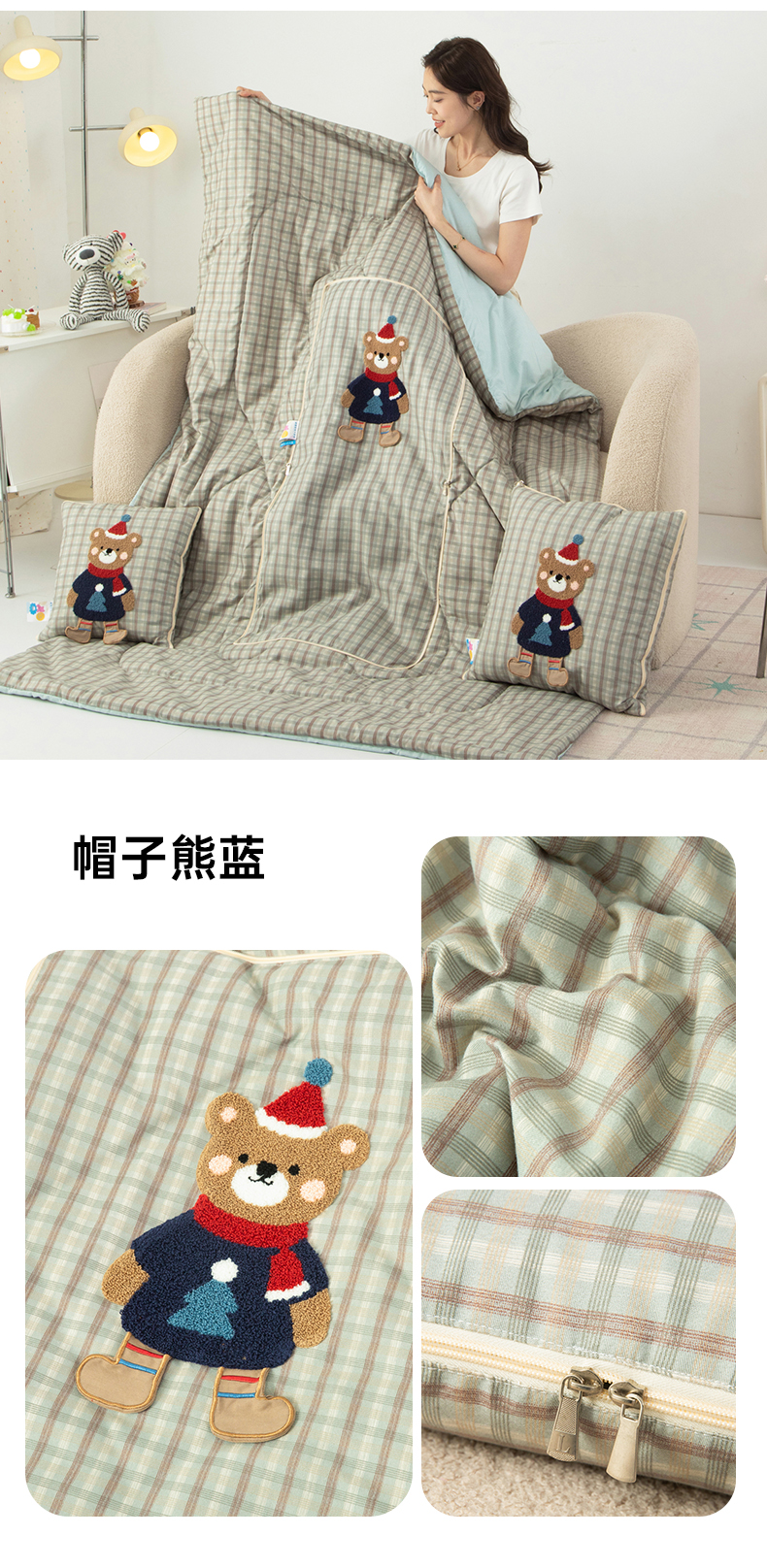 商品名称:雷娜家居 2026新款升级款帽子熊抱枕被 帽子熊蓝